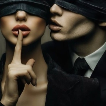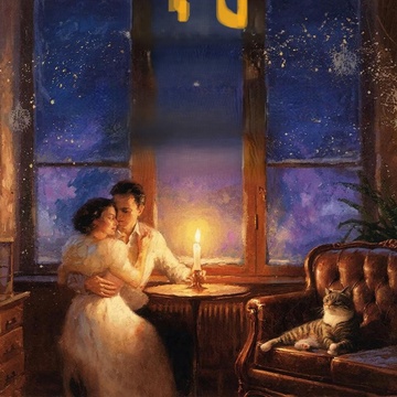Влюблённые под снегопадом.