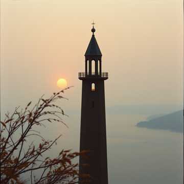 A young man ascends a high tower alone