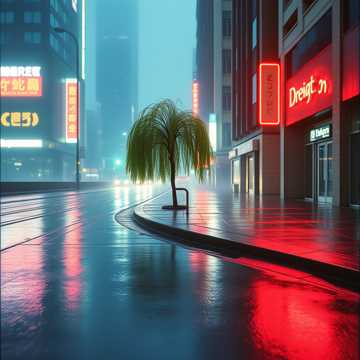Drizzle drifts along the avenues of the