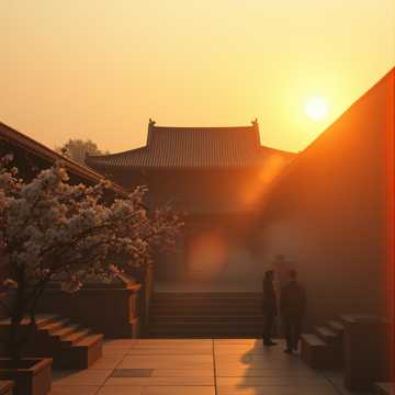 Golden sunset slants upon