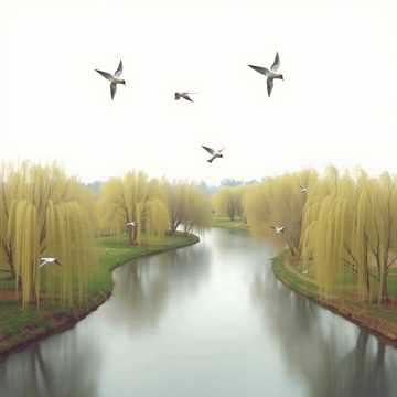 Wild pear blossoms drift gently down