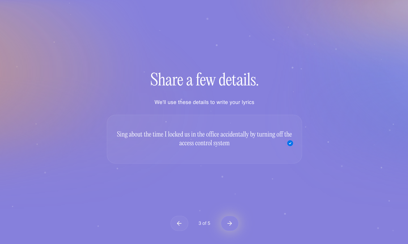 You pick the person, add the details, create the song, and share it with them. The page walks you through it (you can even add inside jokes.)