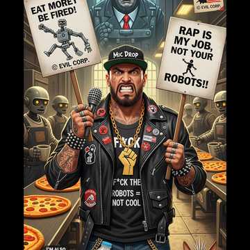 Industrial EDM cyberpunk anthem, 128-140 BPM with sudden tempo shifts to 174 BPM, heavy sub-bass drops, aggressive synth leads, glitchy vocal chops, robotic voice effects, metallic percussion, siren sounds, system crash audio samples, raven rhythm breakdowns, dystopian club banger, matrix-style sound design, hard electronic dance music with industrial elements, powerful bass lines, syncopated beats, cyber-rebellion vibes, dark synthwave influences, aggressive male vocals with robotic processing, epic drops, underground rave energy, futuristic club anthem, digital warfare soundtrack
