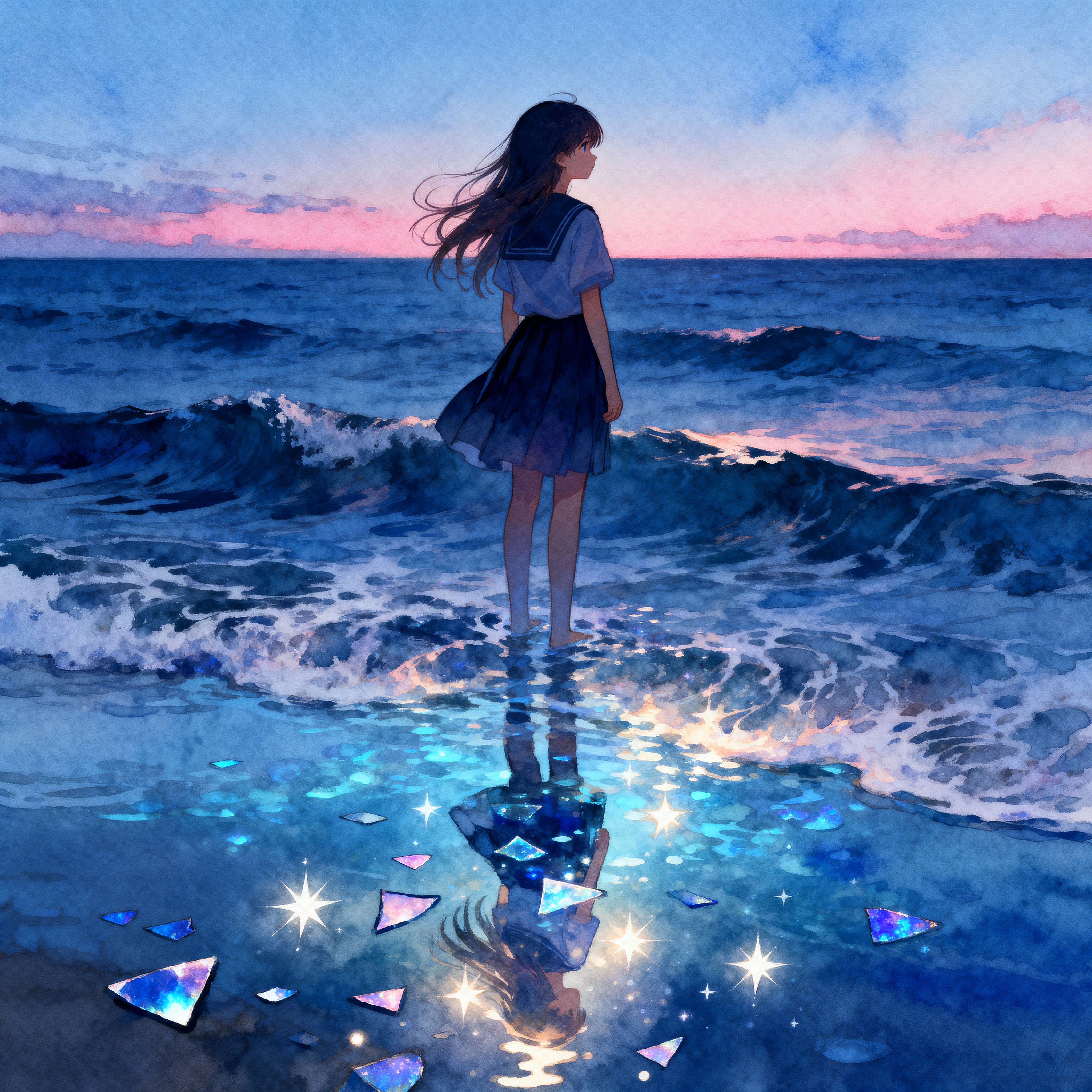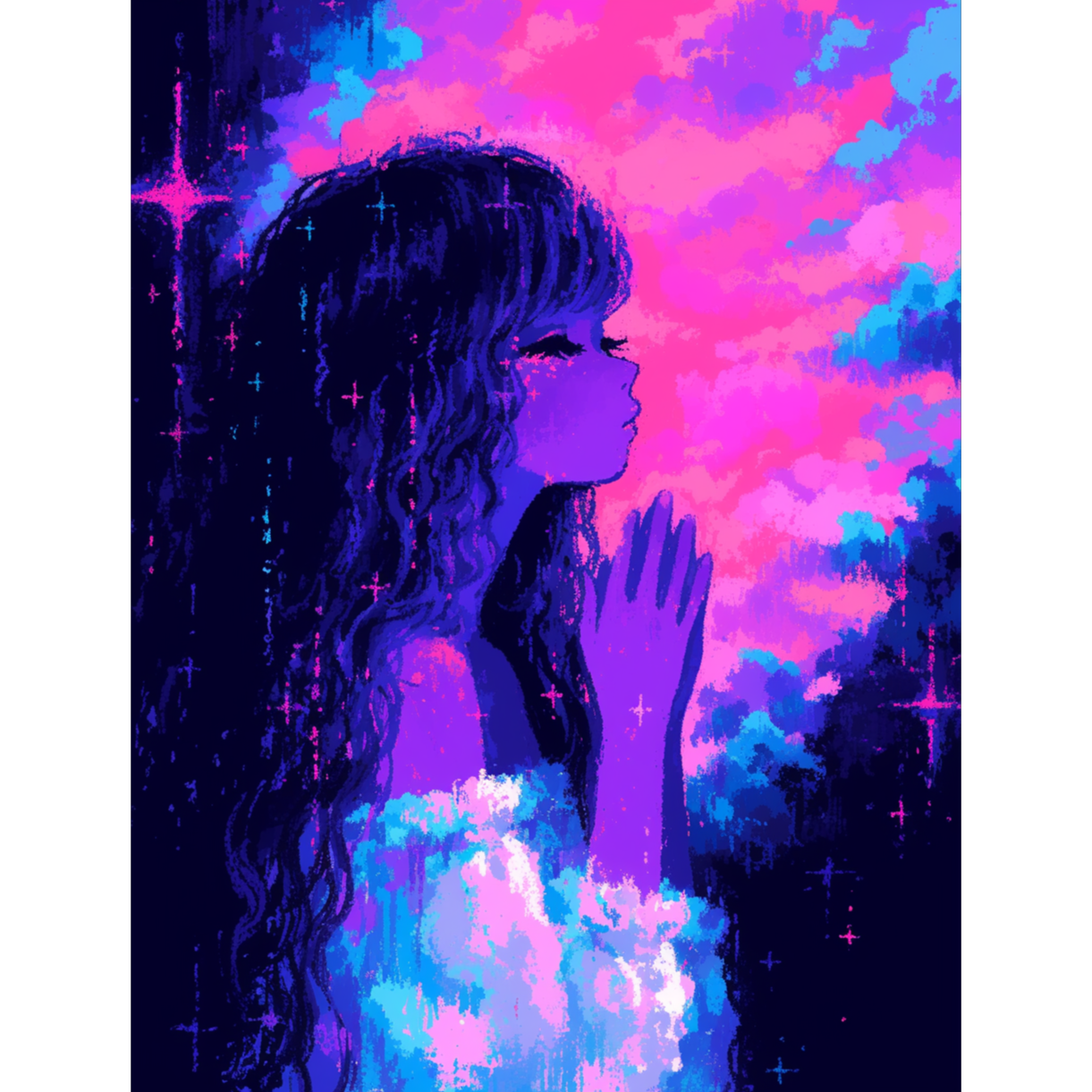 Opening with a sad, echoing piano motif over dense, swirling synth pads, the track drops into futuristic trap grooves punctuated by glitched percussion and intricate hi-hat patterns, Ethereal female vocals float above, treated with vocoder and delay, creating a hazy, hallucinogenic soundscape