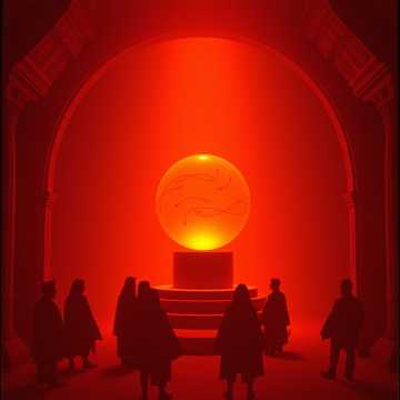 Epic hybrid orchestral-electronic score with swelling strings, deep choirs, and shimmering synth arps; tempo mid-slow with a steady, weighty pulse, Verses intimate with sparse piano and soft pads; chorus explodes into wide stereo strings, taiko-style drums, and soaring female vocals over subtle vocoder harmonies suggesting luminous AIs, Bridge strips back to choir and drones, then a final, triumphant chorus with layered call-and-response hooks, dramatic