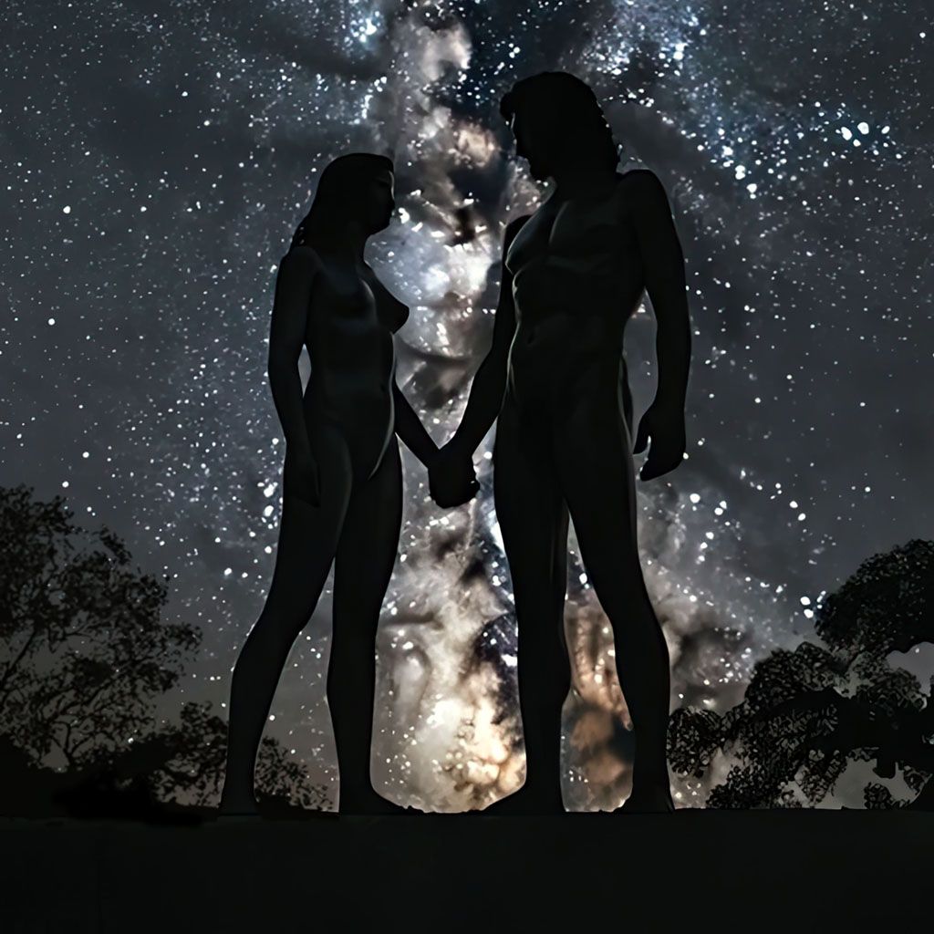 male vocals, atmospheric, steelpan, synthwave, piano, clavichord, female vocalis, duet, reverb