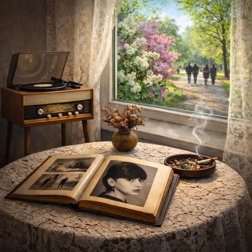 A gentle piano intro opens into lush layered strings and delicate acoustic guitar, setting a reflective mood, Subtle synths and airy pads fill the background, The chorus swells with warm drums, textured bass, and harmonized vocals, gradually building then tapering off for a tranquil finish