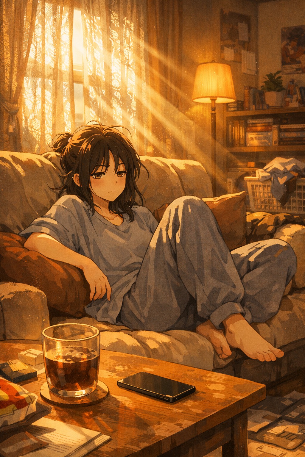 Japanese female vocal, kana input enforced, Tempo 120 BPM, 4/4, E minor, Style: cozy pop, cute but strong, soft apocalypse mood, Verse: whispery, intimate, close mic, Chorus: warm and confident, not aggressive, Bridge: playful then sincere, Outro: whisper and fade, Timing: