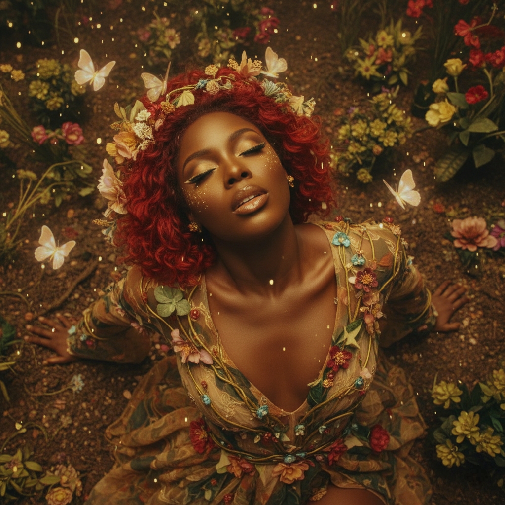 2020s Neo-Soul, Alternative R&B, 2020s, Indie R&B, ethereal, lush, mellow, introspective, sentimental, longing, black american female unique shrill cursive vocal, rhythmic percussion, Trap & Hip Hop groove, punchy 2/4 half-time beat, interlocked sustained jangly synth, tremolo jangly harp riffs, jangly synth bells, smooth, reverberated, Electronic-influenced production, heavy 808s bass, spiritual, optimistic, atmospheric, psychedelic, bittersweet, soothing, lonely, passionate, spring, melodic, warm, stream of consciousness, 2020s Trip Hop, Neo-Psychedelia influences, surreal, trippy, dark atmosphere, groove-based, slow relaxed tempo, swirling hypnotic keyboards, clean electric guitar chimes, Psychedelia studio effects, melancholic, sad, peaceful, bright, mental health, serious, hazy, twinkling, psychedelic digital effects, catchy melodies, reverbed tremolo guitars, effects-laden, dreamy, spacious, dense production, 2020s Psychedelic Soul, Psychedelic Pop, Dream Pop influences, βMale vocal, βbelting, βsoprano vocal, βpowerhouse vocal