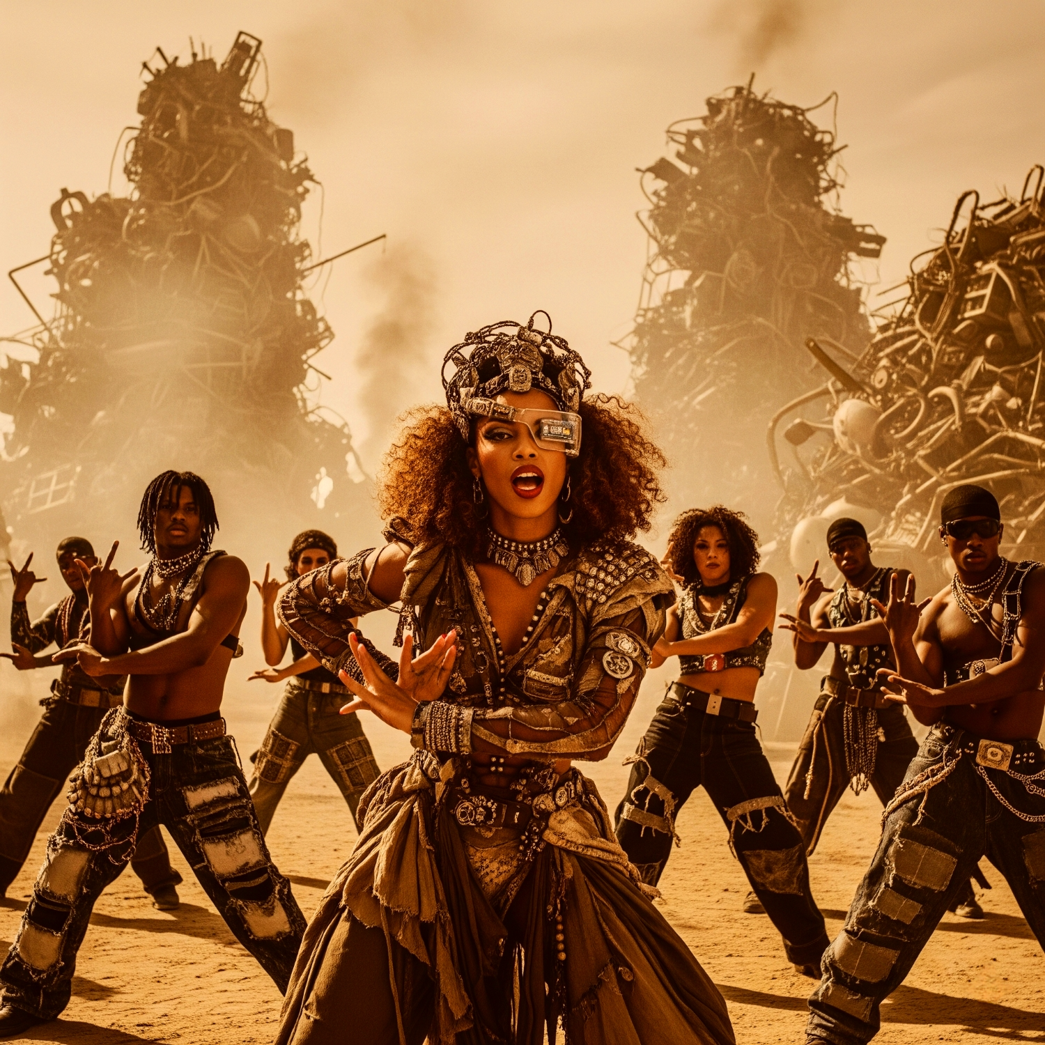 2000s Contemporary R&B, Dance-Pop, 2000s, sensual, tribal, playful, soulful, melismatic, black female R&B vocal, black male rapper, romantic, rhythmic, low-frequency synth stabs, horn bursts, bleeping staccato keyboard, exotic flute, vocal layering, 2000s Dancehall, Bhangra influences, Arabic Pop elements, call-and-response vocals, exotic guitar strums, Funk breaks, syncopated rhythm, congas, tabla, kamancheh, tropical, hedonistic, energetic, siren alarm sound sampling, 2000s Hip Hop Soul influences, βMale vocal, βmodern