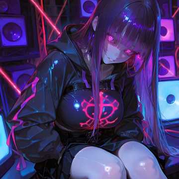 Aggressive distorted synths launch into staccato rhythm, layered with pounding drums and sharp metallic guitar, Female vocals alternate between sweet, airy melodies and intense, manic screams, Twisted toybox samples and playful arpeggios create sudden shifts, heightening the chaotic, horror Kawaii Metal and Yanderecore-inspired tension, The breakdown features hyper-edited glitch beats and eerie music box motifs before slamming back into an explosive drop