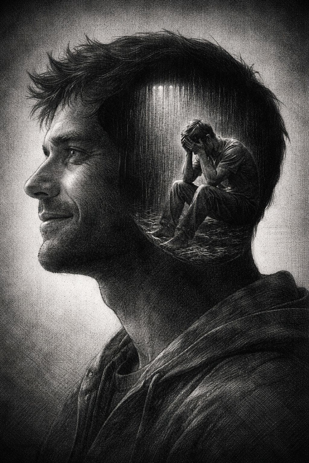 Dark motivational speech-song — spoken-word hip-hop × cinematic ambient × emotional grit, Male voice only, deep and controlled, raw pain with calm authority, Minimal dark beat: slow heartbeat kick, low piano, distant strings, rising bass pulses, Gradual build from silence to intensity, no happy resolution, Theme: surviving the loop, discipline through suffering, standing tall inside a nightmare that never ends, Emotion over melody, tension over release, strength forged in darkness
