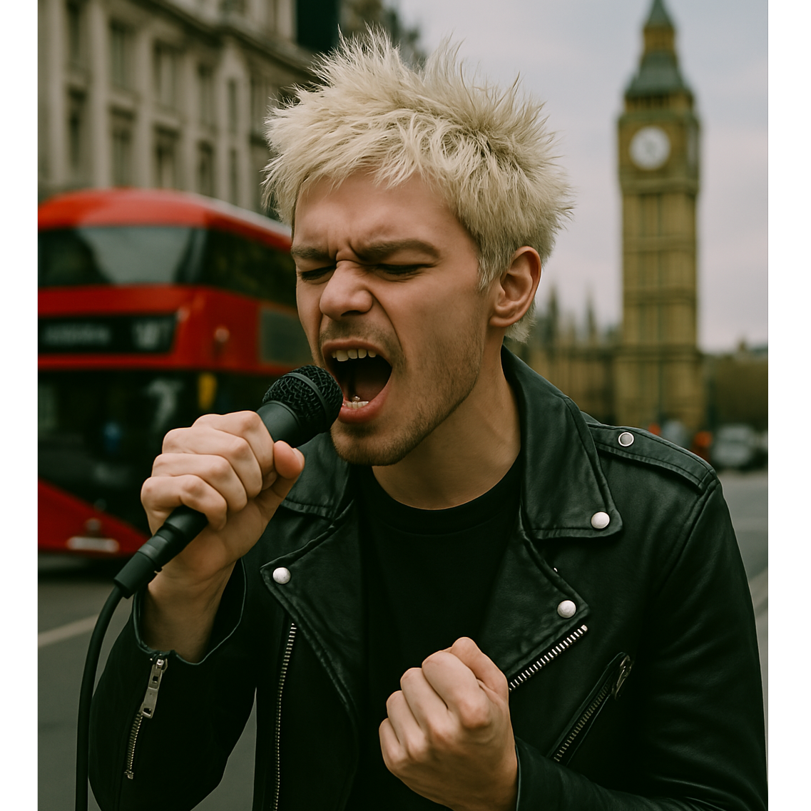 The British alt-pop rock track kicks in with an atmospheric string and reverb-heavy guitar intro, underpinned by subtle electronic textures and ambient noise, Verses feature conversational, urgent half-sung/half-spoken vocals with a gritty Northern edge over distorted guitars, heavy bass, and punchy drums, The chorus swells into anthemic, melodic shout-singing with orchestral layers and driving percussion, reaching a climactic, soaring sound while retaining raw punk energy and emotional vulnerability throughout, BRITISH ACCENT IN VOCALS