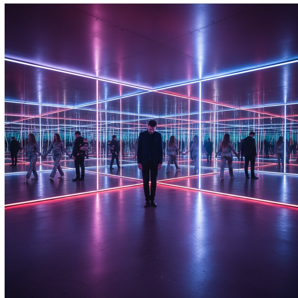 A melancholisch track opens with sparse, minor-key piano chords and subtle synth pads, gradually layered with echoing guitars and understated percussion, Gentle strings swell in the chorus, adding emotional depth, while the arrangement remains spacious and intimate
