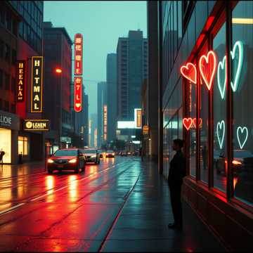 Instrumental in the Glitchhop Romancewave style — a soft, shimmering blend of chill lofi beats and dreamy romantic textures, Start with a warm Rhodes or soft piano melody, layered with gentle vinyl crackle and ambient pad swells, Introduce bouncy synth arpeggios and soft plucks with light glitch effects—like little emotional sparks glitching through the melody, Include mellow drums with brushed snares and relaxed kick patterns, and use subtle vocal chops (non-lyrical "ahh"s or "mmm"s) that feel like a girl quietly daydreaming about the one she loves, Let the track flow naturally with moments of space and lift, Should feel like falling in love with someone through a screen, surrounded by neon light and soft rain
