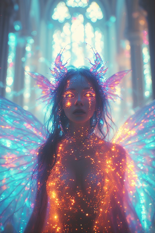 Long suite song, Melody is fast, dynamically oblique and twistedly angular, Rhythm is muddy and relentless with vicious crooked structure, The female finnish heavy metal singer has cristal clear sexy voice and has a hell of fun, going demented like a chained angel during a lustful black mass party, Guitar solos are aggressive, deconstructed and bluesy decadent, Metal guitar riffs are dissonant and syncopated, 432 Hz distorted ultra bass is galloping with intense saturation and biting modulation, Jazz virtuoso drum with deep tom-heavy grooves and heavy offbeat hi-hat accents creates raw drive and tight skittering patterns, Uplifting trance arpeggios and leads run along the EBM pulsing rhythm