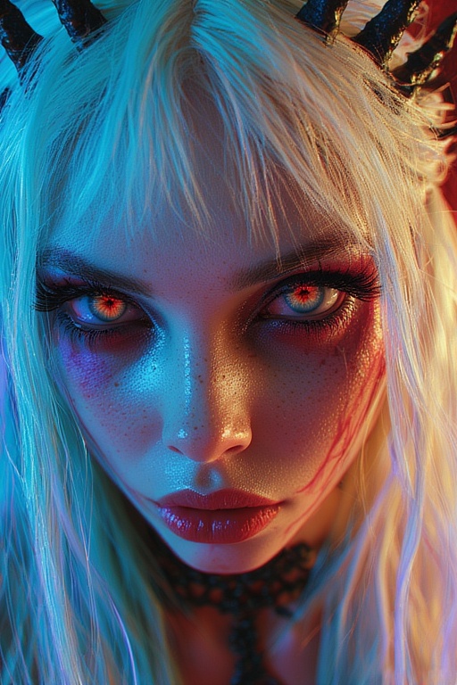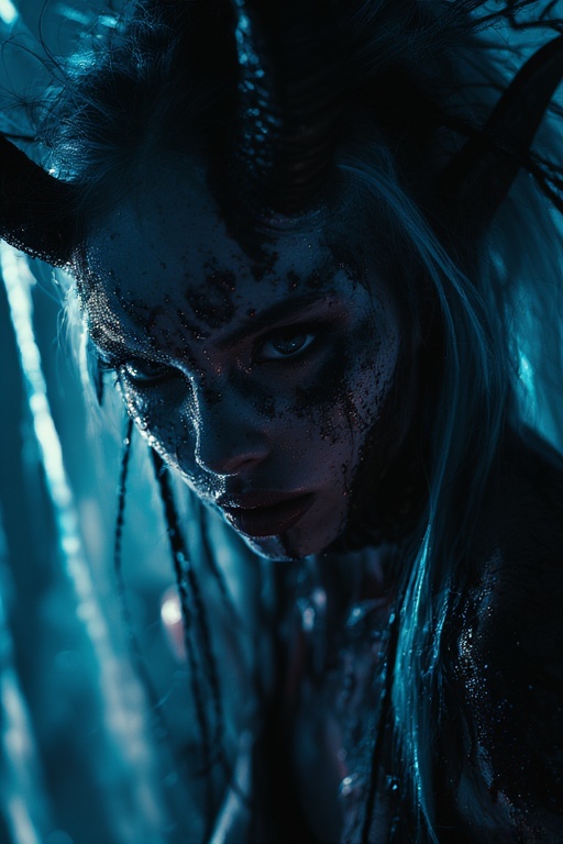 Long suite song, Melody is fast, dynamically oblique and twistedly angular, Rhythm is muddy and relentless with vicious crooked structure, The female finnish heavy metal singer has cristal clear sexy voice and has a hell of fun, going demented like a chained angel during a lustful black mass party, Guitar solos are aggressive, deconstructed and bluesy decadent, Metal guitar riffs are dissonant and syncopated, 432 Hz distorted ultra bass is galloping with intense saturation and biting modulation, Jazz virtuoso drum with deep tom-heavy grooves and heavy offbeat hi-hat accents creates raw drive and tight skittering patterns, Uplifting trance arpeggios and leads run along the EBM pulsing rhythm, ‑Short Song, ‑Cinematic, ‑Classical, ‑Power metal, ‑Black metal, ‑Rock, ‑Pop, ‑R&B, ‑Indie, ‑Ambient, ‑Dance, ‑Chillout, ‑Folk, ‑Country, ‑Blues