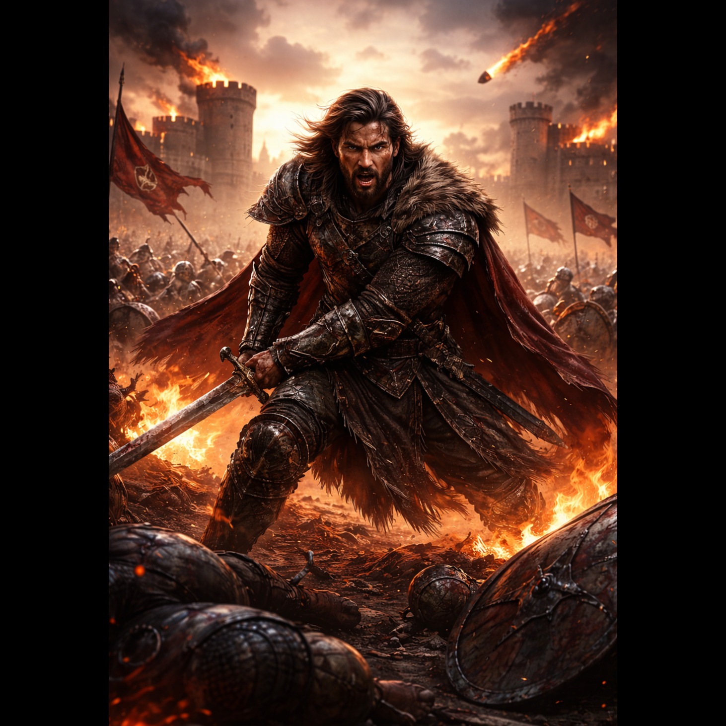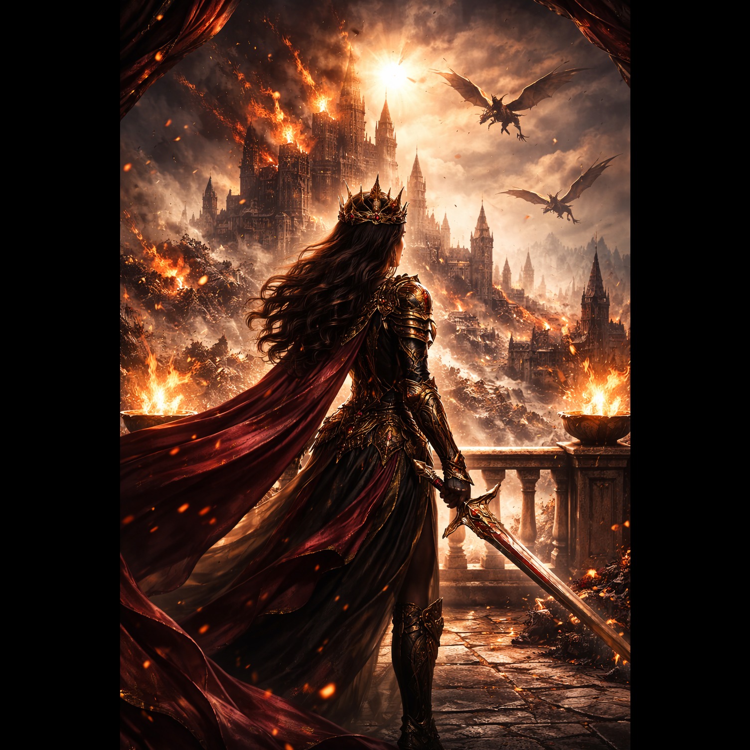 cinematic pop, 95 BPM, full orchestra, massive brass stabs, taiko drum hits, hybrid sub-bass, choir swells, string ostinato, timpani rolls, horn fanfares, sidechain pumping, wide hall reverb, build break drop, final resolution, high intensity, heroic triumph