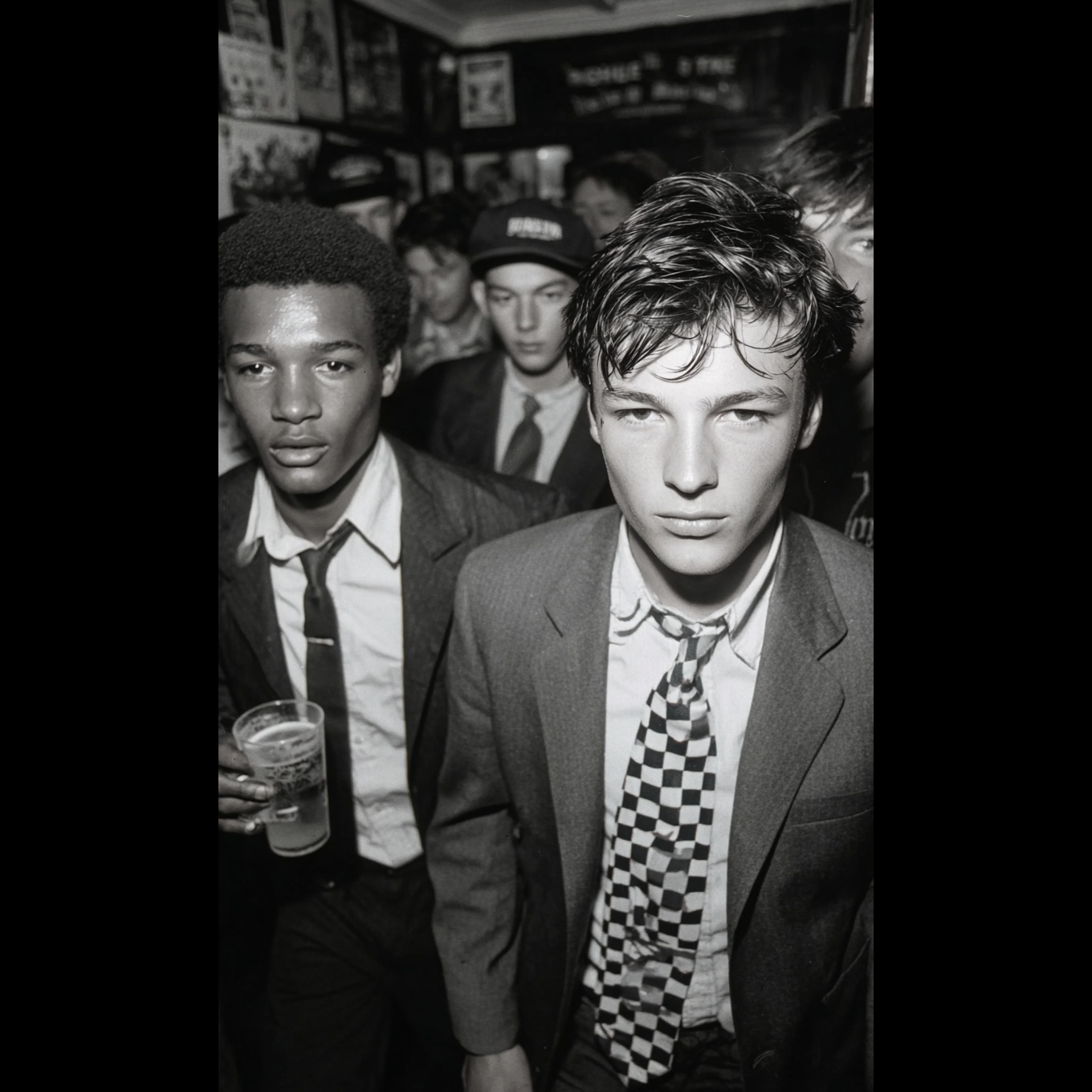 ska, 2 tone, 80s british ska-punk, pub ska, dancefloor skanking, group vocals, brass riffs, live chant vocals, pub anthems, stomp rhythm, punk energy, lo-fi mix, two-tone attitude, flash tempo ska, checkerboard bounce, ‑roots reggae, ‑dub, ‑lovers rock, ‑jungle, ‑reggaeton, ‑dancehall, ‑calypso, ‑afrobeat, ‑dub poetry
