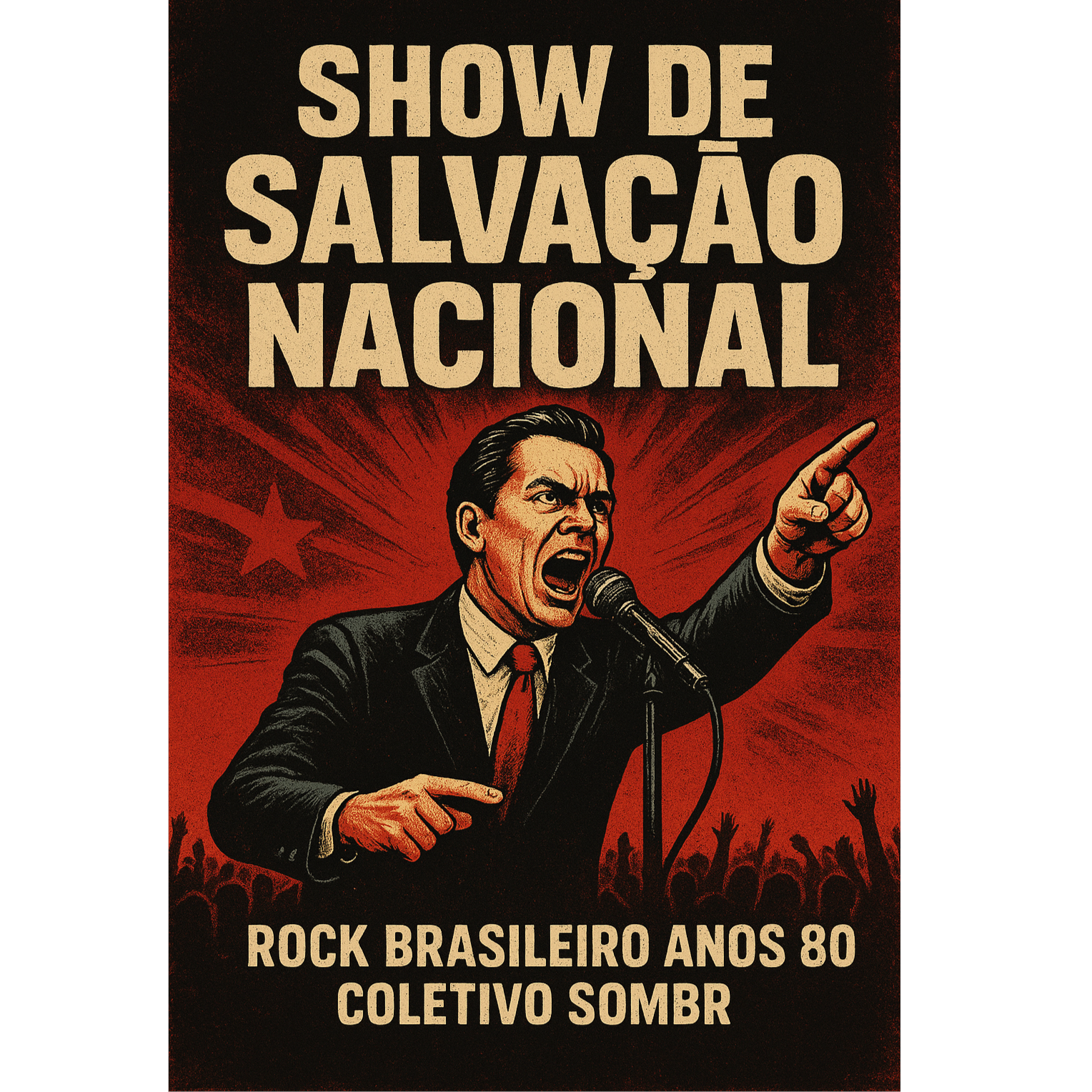 ENRES: 80s Brazilian Rock, Blues Rock, Post-Punk, Live Rock, STYLE: Raw, poetic, urban, bluesy, anthemic, defiant, The chaotic energy of a live 80s concert recording, MOOD: Nostalgic, passionate, cynical yet romantic, disillusioned, communal, VOCALS: Raspy, mid-range male lead, intensely emotional and raw, Conversational verses explode into a shouted chorus with audience singalongs and ad-libs, full of poetic angst, ARRANGEMENT: Built on the raw interplay of a bluesy guitar riff and groovy bassline, Tense verses build dynamically to an explosive, passionate chorus, Features a soulful, expressive guitar solo, INSTRUMENTATION: Two electric guitars (clean/overdriven), prominent melodic bass, powerful live drums with heavy snare, subtle Hammond organ, constant audible crowd noise, PRODUCTION: Raw, unpolished 80s live concert recording, Mix has crowd noise bleed and natural arena reverb, Prioritizes raw energy over studio perfection, Vocals are upfront, TEMPO: 115 BPM, with a driving, soulf