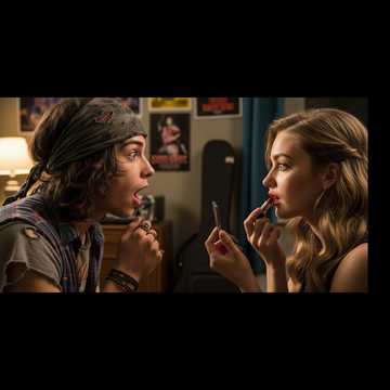 Opens with fast, bright guitar riffs and syncopated, groovy bass locked to dry, punchy drums, Verses are led by expressive, dramatic vocals, alternating comedy and tragedy, Witty radio snippets and sarcastic choral chants punctuate the high-energy, theatrical rock sound, Mid-song, an extravagant guitar solo dazzles over driving rhythms, all in bold 1980s glam and new wave textures, The finale erupts in layered chaos—a burst of static then an exaggerated, mocking laugh, All vocals in lively Brazilian Portuguese for extra flair