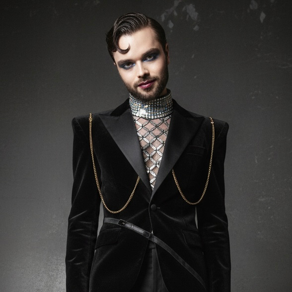 Aggressive dark pop foundation with distorted synth leads, punchy low-end bass, and driving electronic percussion—hard 808s, snappy snares, and syncopated hi-hat rolls for attitude and momentum, Glitchy hyperpop textures: vocal chops, stuttered synths, pitch bends, and sporadic digital effects to punctuate hooks and drops, Layered darkwave atmospherics—detuned pads, eerie textures, and reverb-soaked arpeggios—create a shadowy, cinematic backdrop, The arrangement alternates between intense, maximalist choruses and sparse, tense verses, giving lyrical delivery room to dominate, Overall, the sound is bold, confrontational, and playful, blending gothic and dark pop aesthetics with hyperpop’s chaotic energy, emphasizing personality and attitude in every element