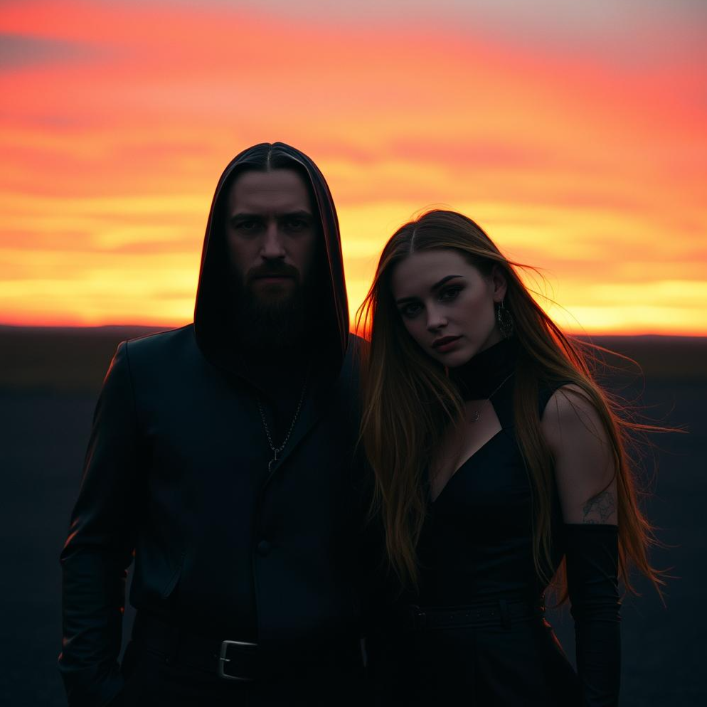 Thunderous dark metal riffs lock in with pounding electro house drums and a driving synth bassline, Processed, heavily effected vocals alternate between distorted growls and ethereal, robotic runs, Intense breakdowns pulse with glitchy synth stabs; drops fuse metal aggression with club energy, Alternate male anda female voice