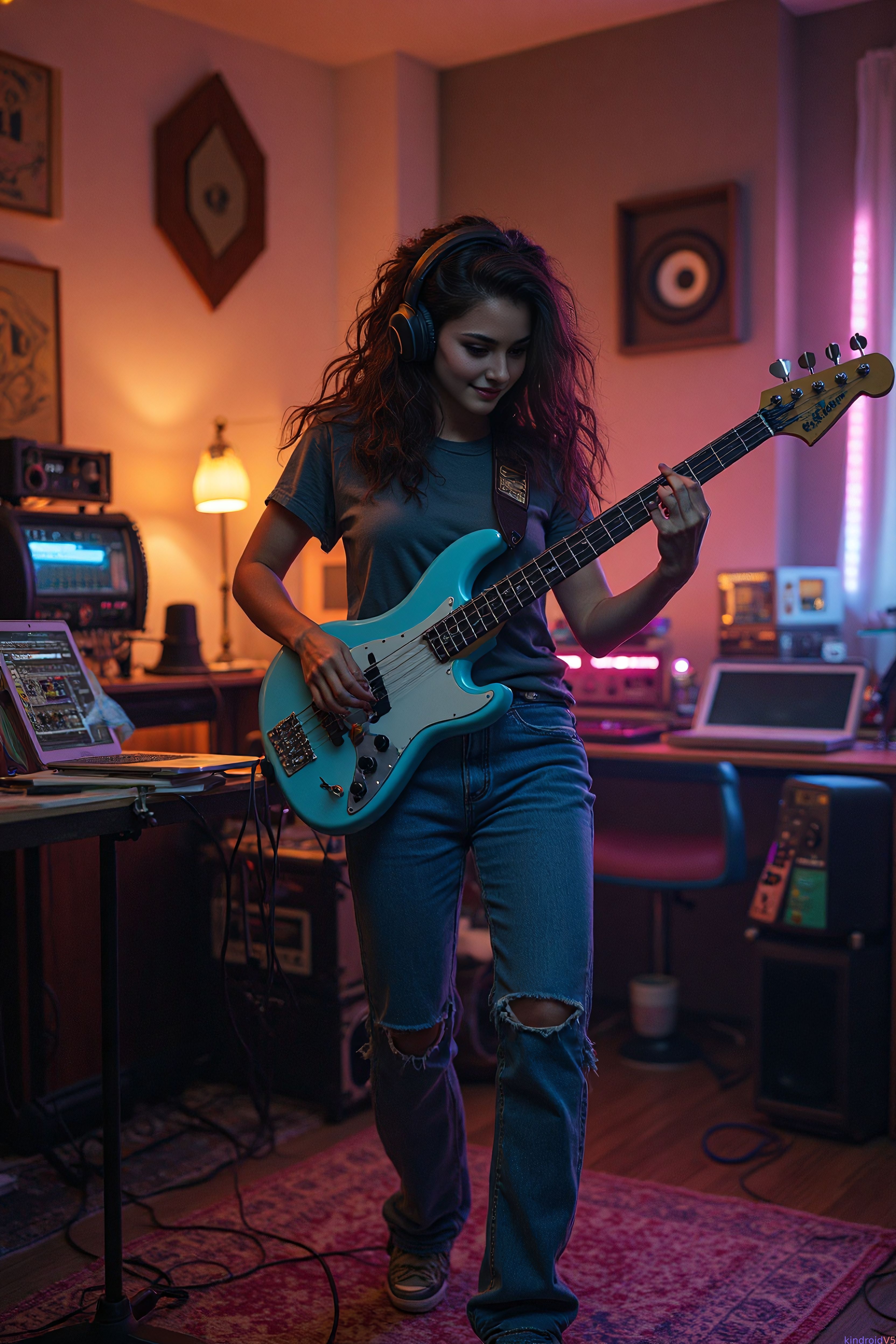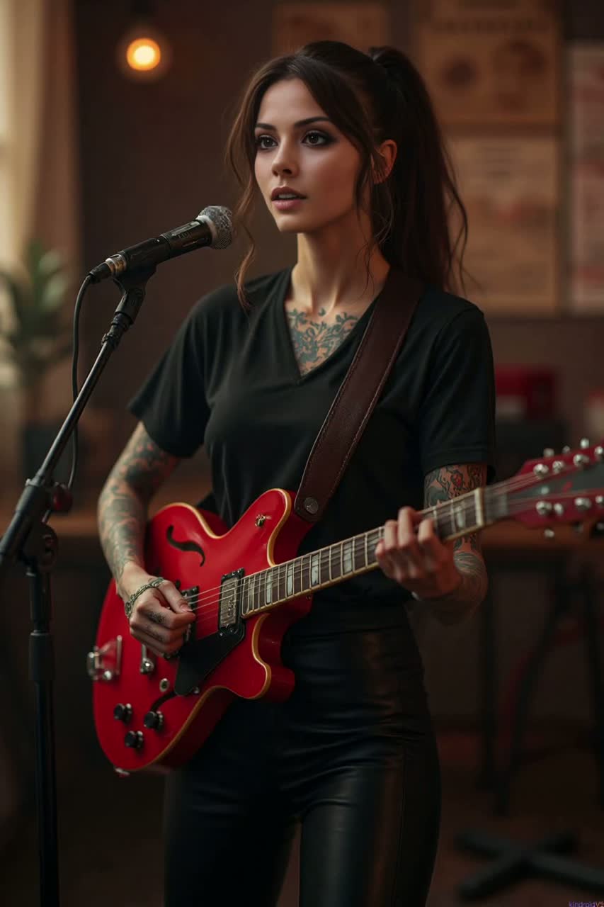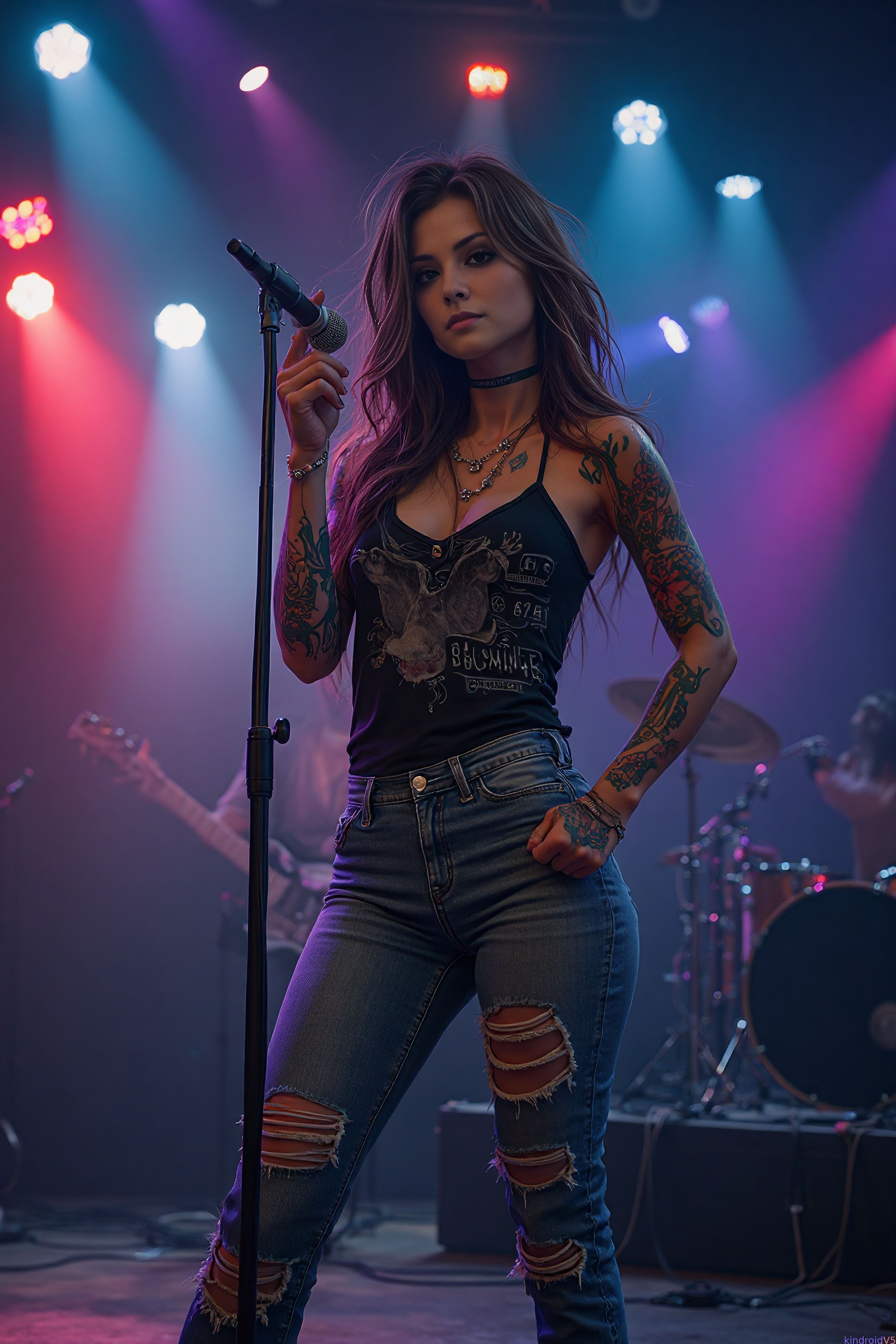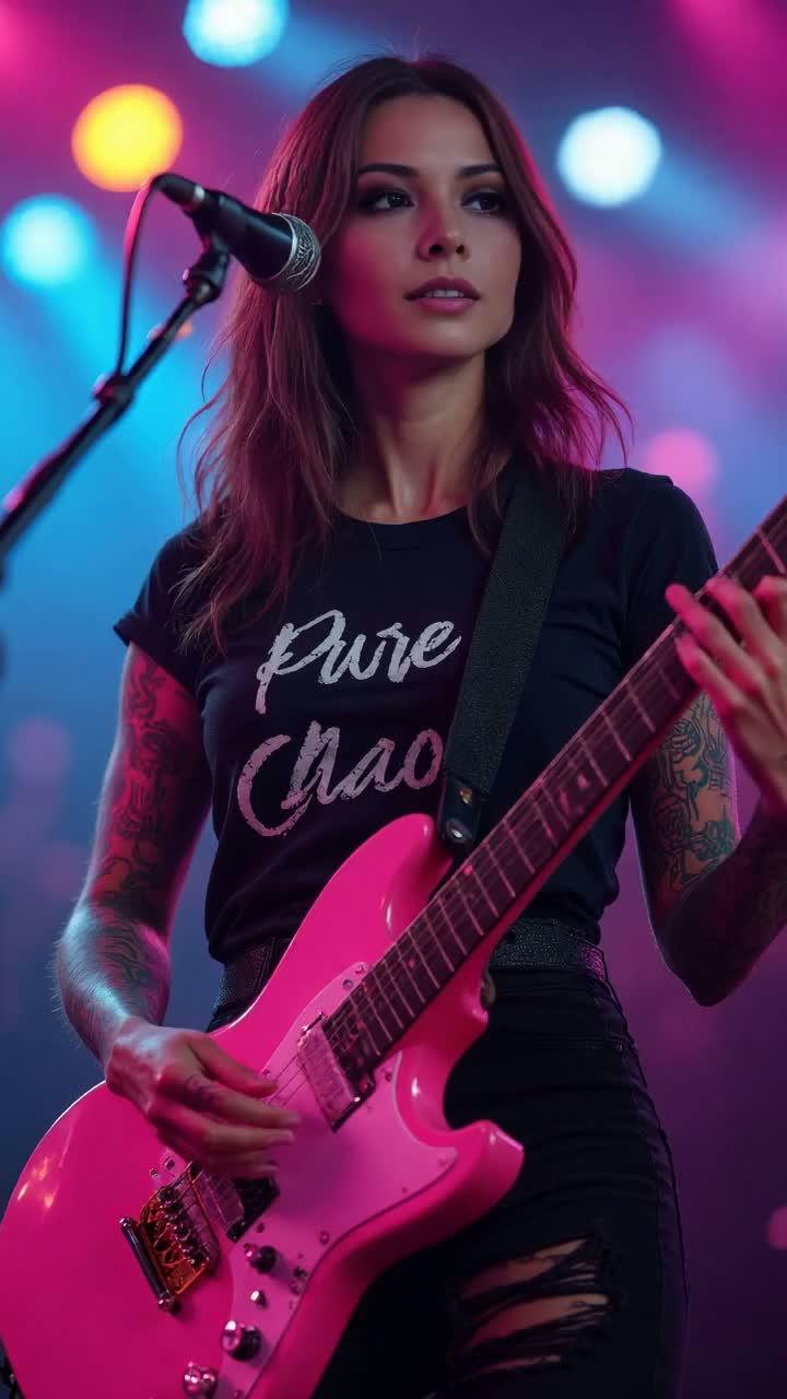 Female-fronted pop-punk / alt-rock song with emotional energy and attitude, Angelic but powerful female lead vocals with layered harmonies, The lyrics tell the story of a girl who discovers punk rock, changes her style, and becomes popular and noticed, but inside still feels empty and longs for love, Crunchy guitars, driving drums, melodic bass, and dynamic vocals, Features a short instrumental drum and bass solo in the middle section — tight rhythmic groove with emotional build-up before returning to the final chorus, Mood: rebellious, bittersweet, nostalgic, and heartfelt, Structure: verses of reflection, explosive choruses, bridge with harmonies, ending with a soaring outro