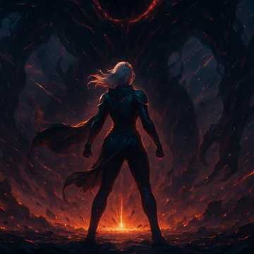 Mood: Desperate, powerful, emotional, triumphant, epic, intense, powerful, Setting: Final battle against the entity that destroyed everything she loved