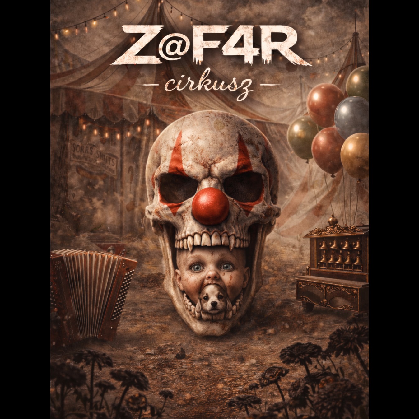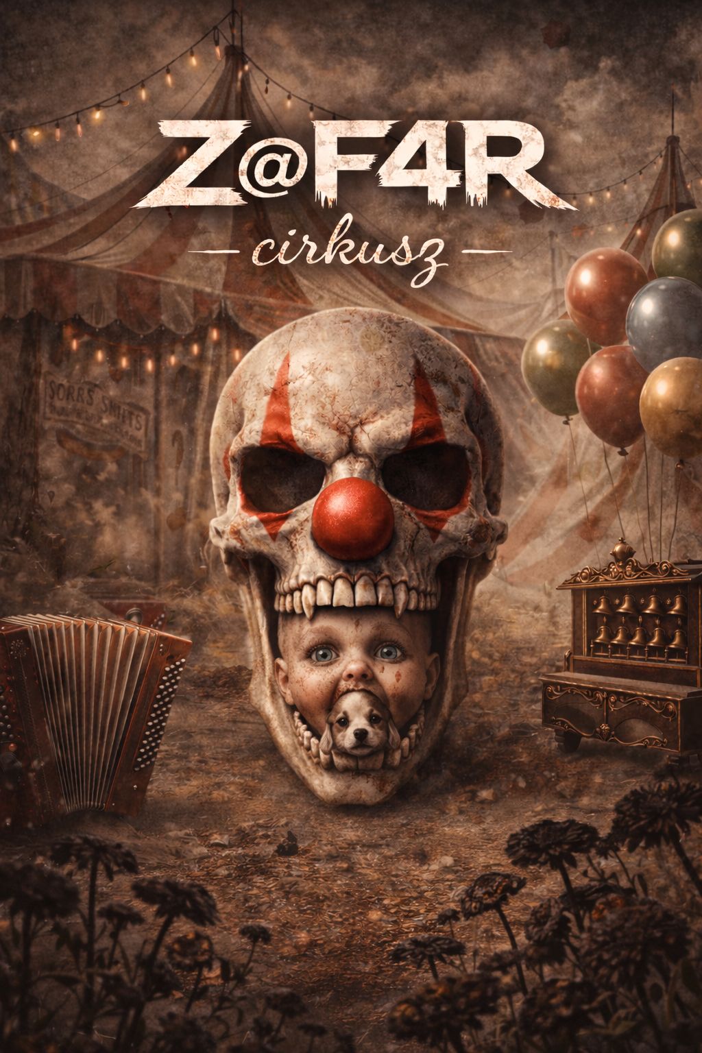 eerie tuba, creepy, accordion, shivering, choir, hungarian lyrics, circus, clown, concerning, violin