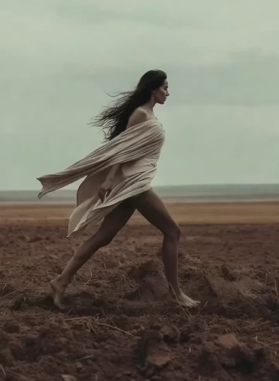 Minimalist ritual cinematic piece with ambient breath and no melodic repetition, Original non-remix composition generated from scratch, no reference audio, Female voice — low, bare, no vibrato — delivered as spoken incantation fading into the soundscape, No choir, No hook, Very slow tempo, sparse textures: desert wind, soft frame drum heartbeat, low rumble, ancient dust, No climax, No resolution, Just presence, Texture-driven sound: air, breath, dry stone, footstep, fading sky, Mood: decisive, ancient, beyond sorrow or defiance, Start with voice — no intro, no overture, no vocalizations, Clip Volume: Vocals +3 / Drones +2 / Percussion +1