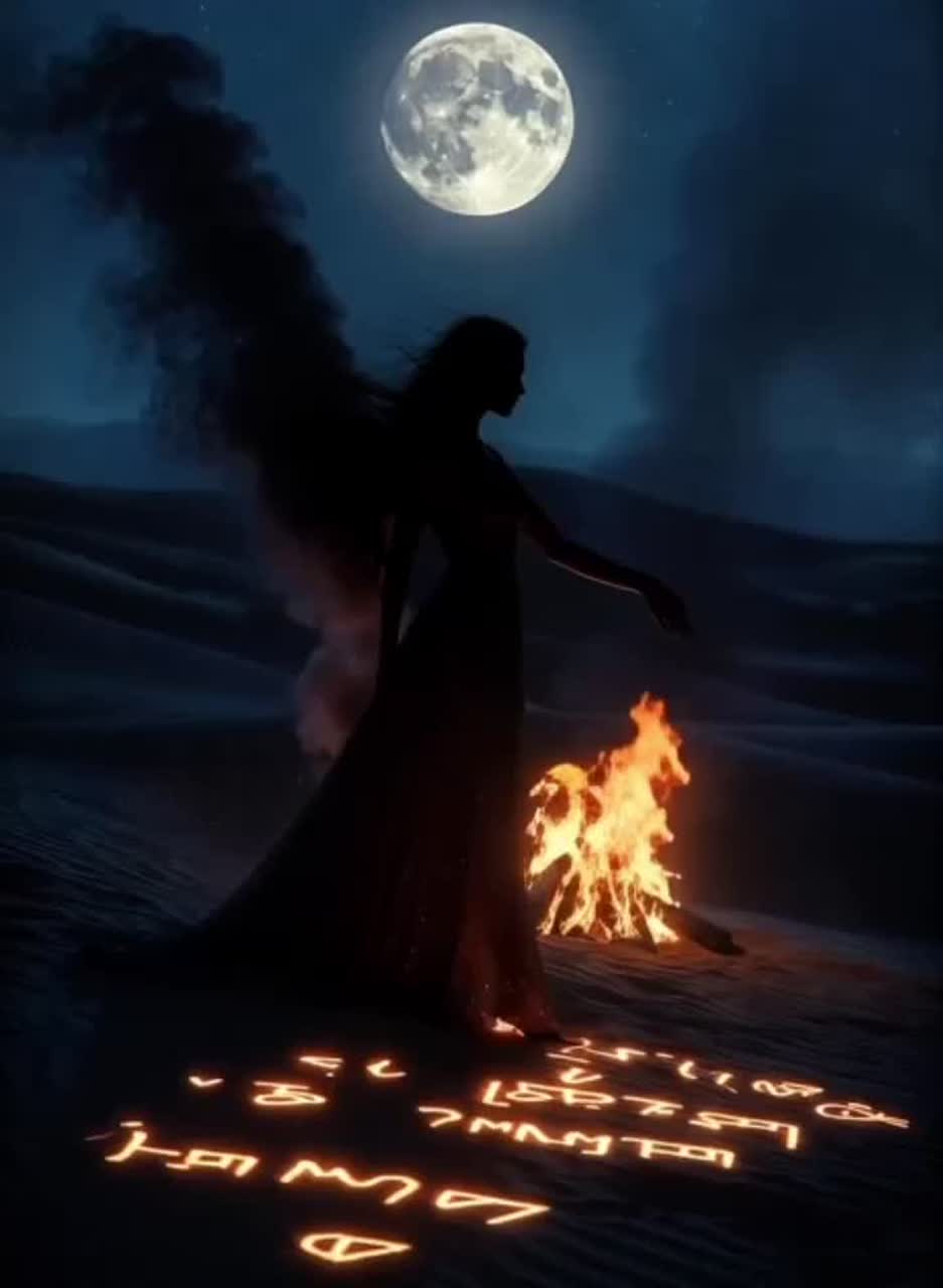 Epic symphonic dark folk ritual ballad, Ancient Mesopotamian atmosphere, Female ethereal contralto lead, deep and hypnotic, with ritual whispers and low ceremonial choir, Slow ceremonial build, dark strings, drones, frame drums, ancient percussion, distant horns, Akadyjski / mezopotamski szept jako warstwa rytualna, Mood: mystical, forbidden, nocturnal, powerful, ancient feminine energy, Texture-driven sound: sand, wind, fire, night, Long dramatic crescendos, trance-like pulse, sacred reverb, cinematic depth, Very long storytelling form, Start immediately with whispered ritual — no intro, no ambient buildup, Clip Volume: Vocals +3 / Choir +2 / Strings +1 / Percussion +2 / Drones +1
