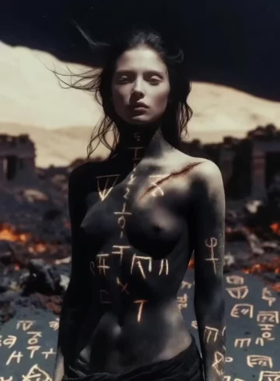 Epic ritual symphonic dark ballad rooted in ancient Mesopotamian myth, Original non-remix composition generated from scratch, no reference audio, Female ethereal contralto lead with whispered Akadyjski incantations, deep ceremonial male choir used sparingly, Slow nocturnal tempo, hypnotic pulse, Ancient frame drums, low ceremonial percussion, dark strings, drones, distant horns, Texture-driven sound: wind over sand, night fire, breath, shadow, Mystical, forbidden, primordial feminine power, Long-form cinematic build with trance-like repetition and dramatic crescendos, Start immediately with whispered ritual — no intro, no ambient buildup, no soft vocalizations, Clip Volume: Vocals +3 / Choir +2 / Strings +1 / Percussion +2 / Drones +1