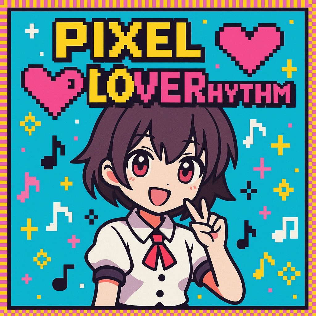A hyper-cute, high-energy 8-bit chiptune track inspired by "denpa song" aesthetics, Features rapid-fire pulse waves, arpeggiated square leads, crunchy bitcrushed drums, and playful blips and bloops, The tempo is fast and bubbly (around 165 BPM), with catchy melodic hooks and a heavy swing feel, Add sparkly retro FX like rising glissandos, "coin pickup" sounds, and glitchy percussive fills, The overall vibe should be colorful, adorable, and a bit chaotic, like a rhythm game from a parallel universe, Think kawaii overload with digital charm, Include short breaks for comedic pauses and a cute glitchy outro, Ideal for a virtual idol singing about pixelated love in a techno-fantasy world