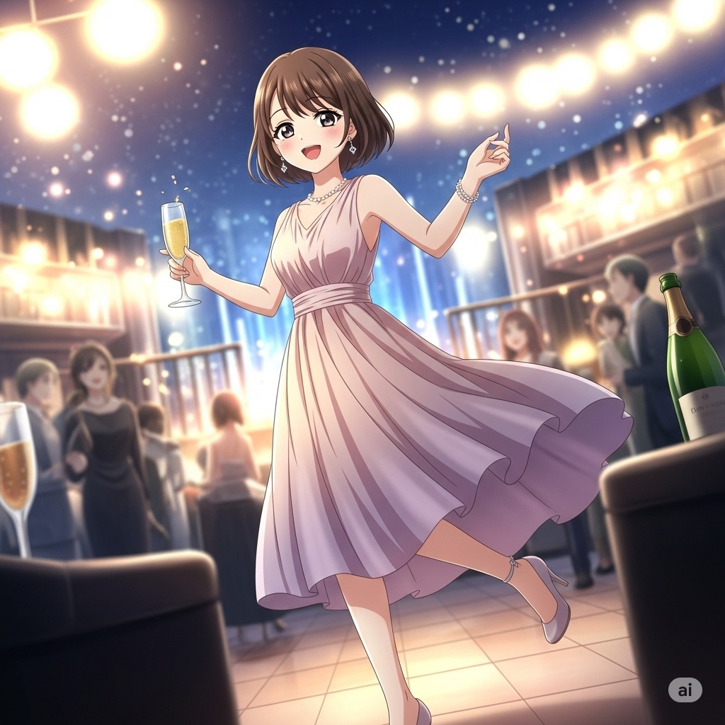 Idol Pop / J-Pop (bright and cute) - BPM: around 128, 4/4 - Vocal: Idol-like, cute female vocal (slightly high, energetic voice) - Instrumentation: Synths, hand claps, light drums, sparkling SE (clapping SE) - Mood: Cute and pop, lively like a live concert venue