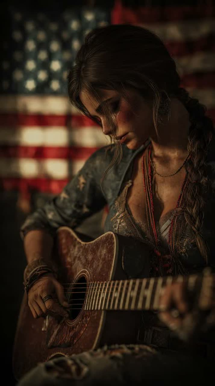 Ambient spaghetti western, southern gothic, junkyard percussion, Raw folk protest anthem, acoustic guitar, stomp/clap rhythm, minor key, 85 BPM, finger picked banjo