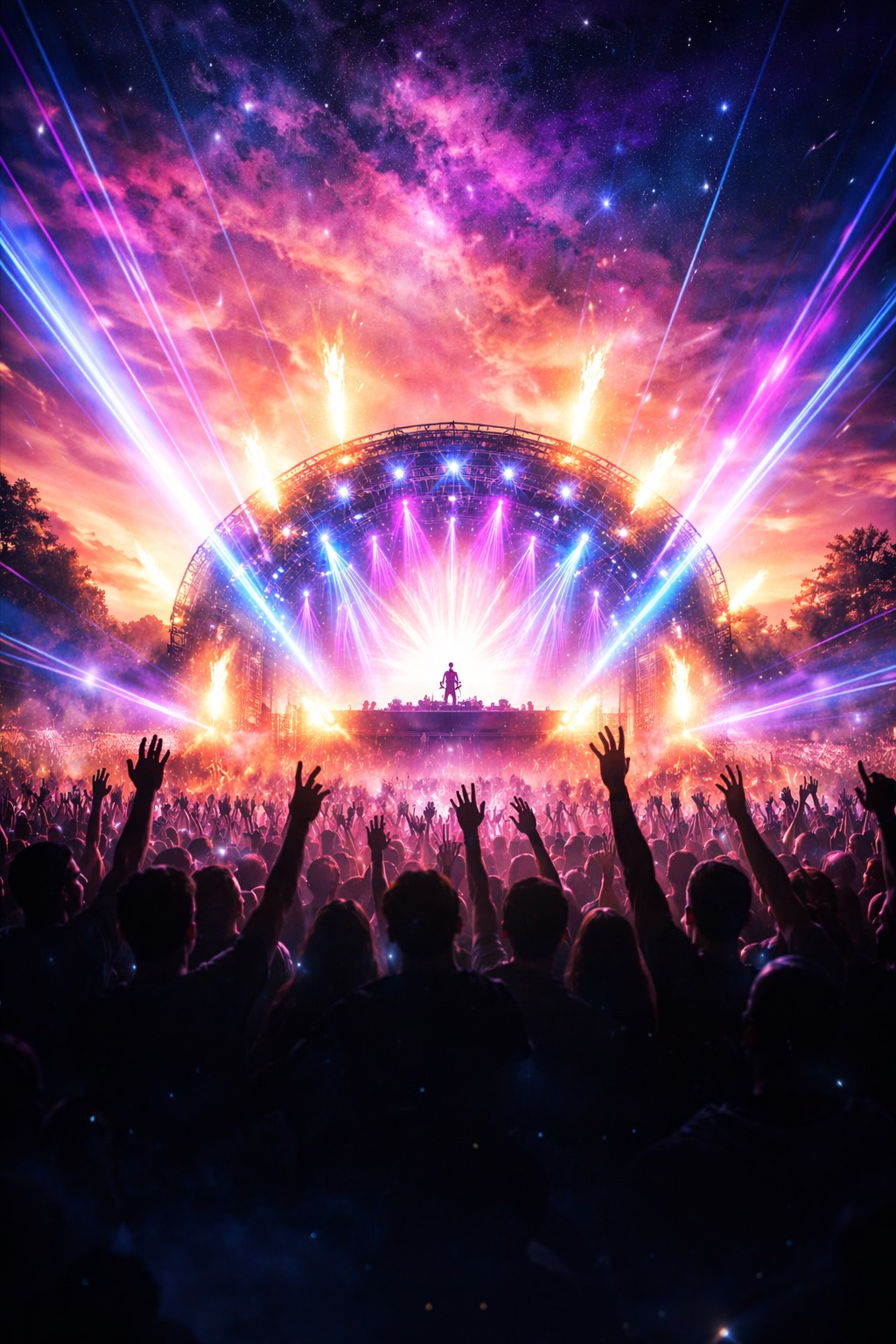 dance, High-energy festival EDM with a rubbery sidechain bass driving the groove, bright supersaw chords, and crisp four-on-the-floor kick, Male vocals chopped and layered in the drop, with filtered build-ups, noise sweeps, and hands-up pre-chorus that explodes into a massive bass-led hook, bassline, edm