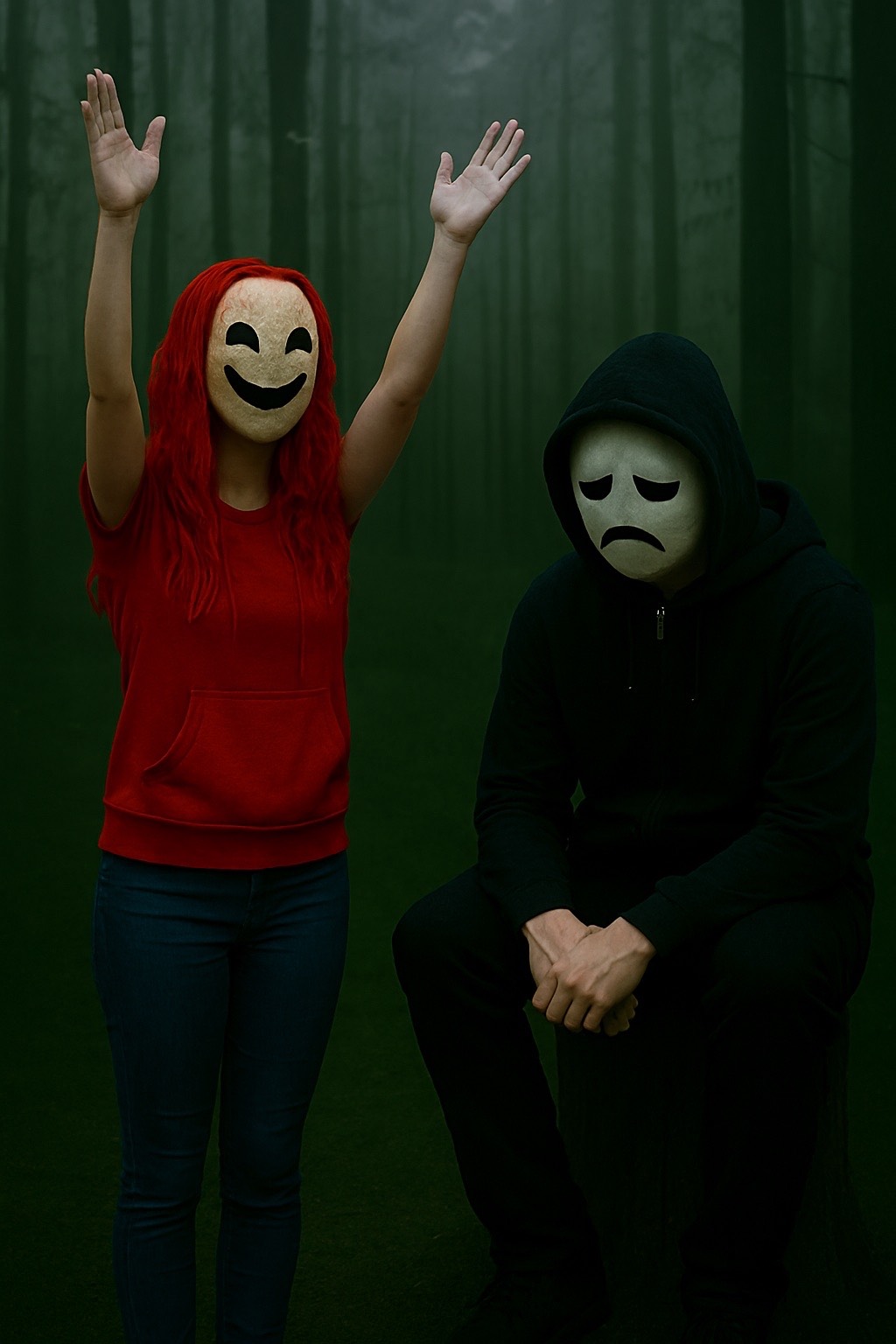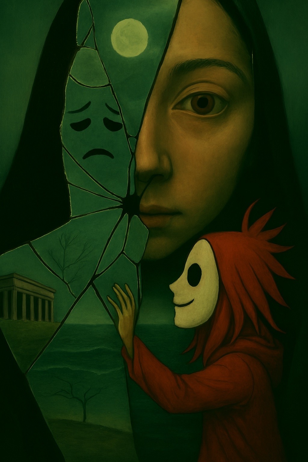 Start in F minor with ambient static and eerie pads, Layer tribal percussion and distorted bass swells, Add psycho-cute vocal fragments—cryptic, looped, fading like echoes, Use metallic textures and turntable stutters sparingly, Build tension with glitchy industrial synths, then drop into a euphoric climax with pulsing low-end and surreal vocal echoes, End with ghostly pads and rhythmic decay