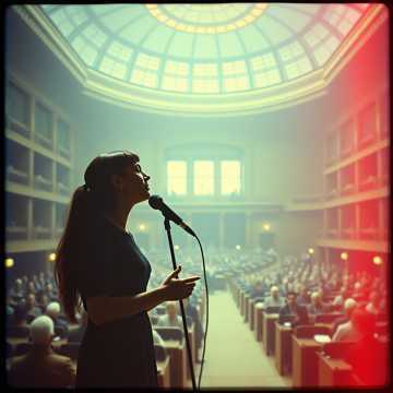 The song launches with a fierce, looping dual-guitar instrumental intro, thick and distorted, over booming snare rolls and punchy kick, Verses switch between dynamic male and female vocals, both tinged with a German accent, Crunchy thrash riffs crank up during breakdowns, Layered live crowd clapping and background chanting fuel the high-energy concert feel, while the audio captures organic interplay of band and audience, Multiple voices add heft in choruses, the recording crackling with spontaneity and authentic live ambiance