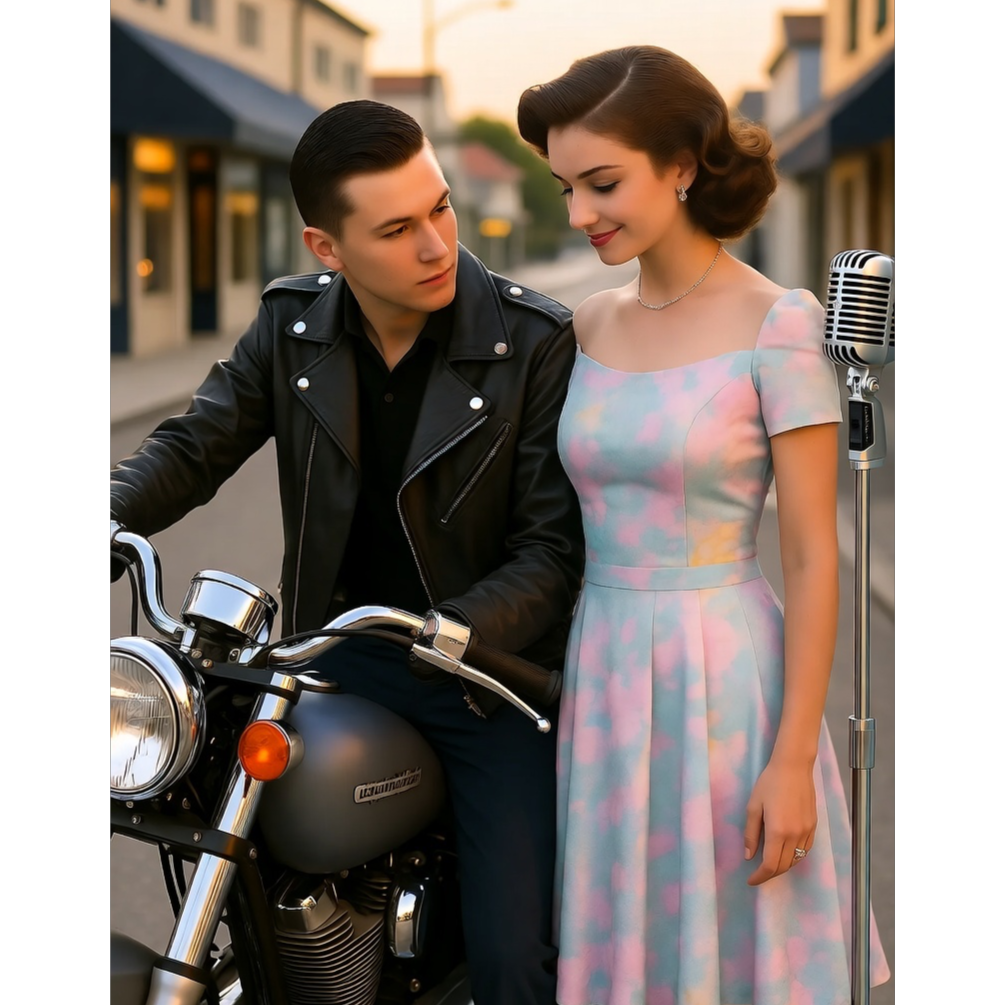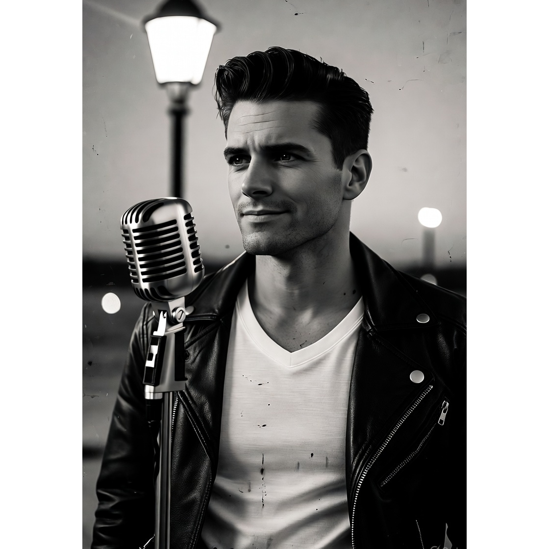 1950s rock ’n’ roll love song, male crooner vocal, upbeat but gentle rockabilly rhythm, twangy electric guitar, upright bass, brushed drums, light piano, soft backing ‘ooh’ harmonies, warm vintage microphone tone, innocent sweetheart romance, retro 50s charm, ”