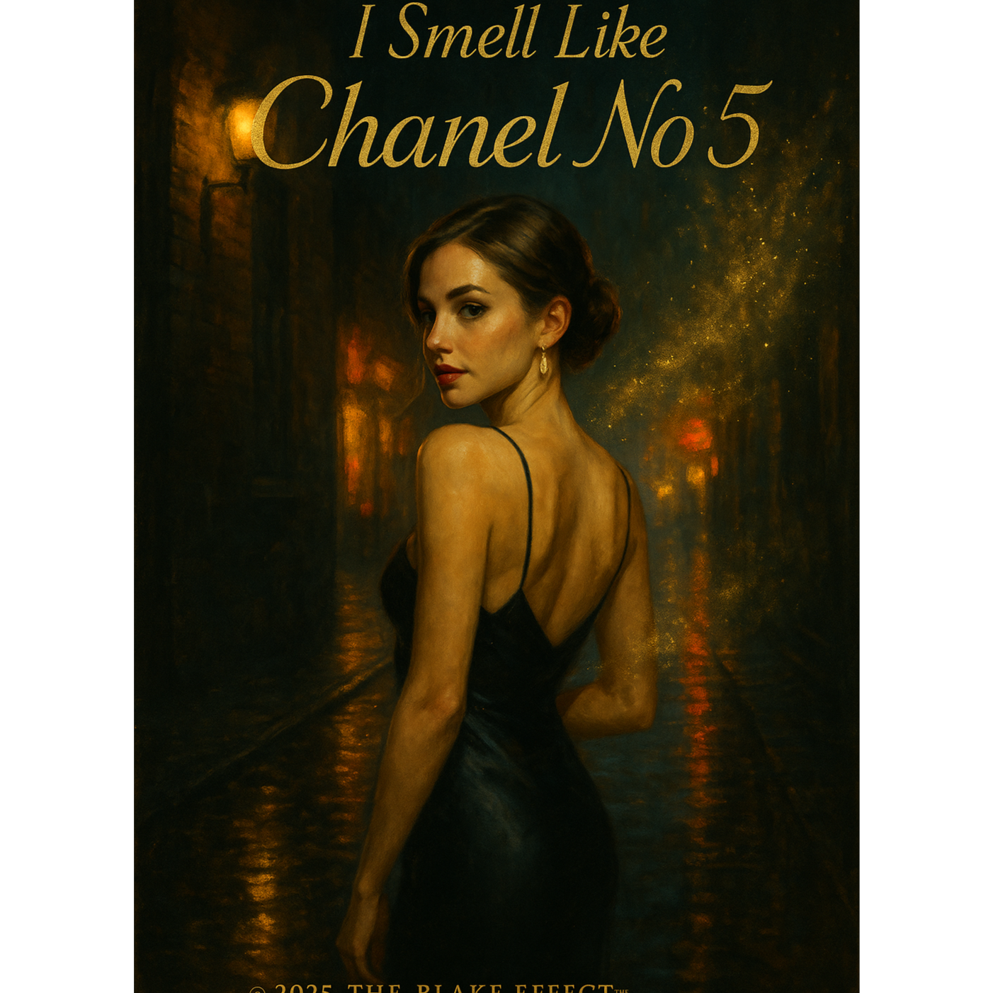 Lo-Fi jazz pop with luxury soul influence, Female vocal, sultry and confident, mid-range tone with smoky delivery, Layer soft jazz piano, upright bass, brush drums, muted trumpet, and Lo-Fi crackle, Add subtle perfume-spritz sound at intro and outro, Tempo 96–100 BPM, Tone: sensual, elegant, cinematic, playful — confidence wrapped in Chanel, The Blake Effect™ Lo-Fi Luxury Series (Female Edition)