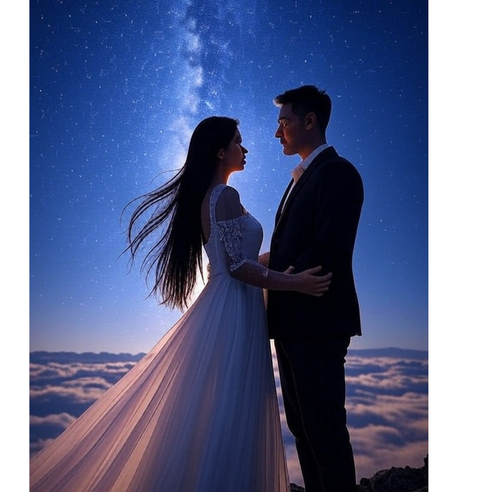 Create a Cosmic Reggae Fusion track with a warm, romantic, and poetic male vocal performance, Use Star-Beat Strums (soft off-beat guitar rhythm) blended with gentle island percussion, deep rounded reggae-style bass, and smooth R&B-influenced chord progressions, Add lush cosmic pads, soft synth sparkles, celestial chimes, and subtle vocal ad-libs to create a dreamy, starlit atmosphere, Include light background harmonies for warmth and emotional lift, Keep a clean, soulful tone with a confident but tender delivery, Tempo around 88–96 BPM, with a relaxed sway, nighttime beach energy, and a sense of cosmic destiny, No artist names, keep it original, romantic, and cinematic