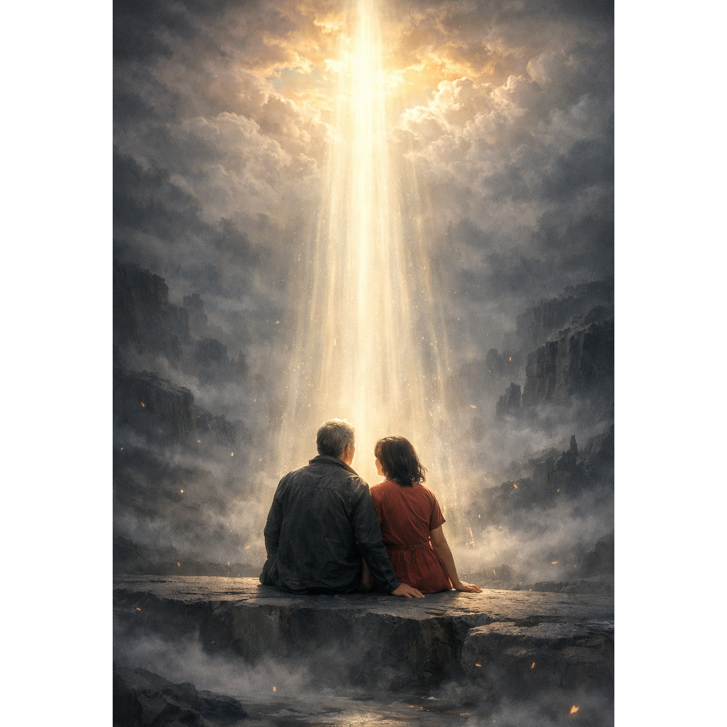 Slow roots reggae duet with soulful male lead and warm female response, Deep, reflective, and spiritual tone with organic island instruments, Gentle offbeat reggae guitar, soft bass groove, light percussion, and subtle Nyabinghi-style drums, Warm male vocal with a wise, calm, emotional delivery, blended with a grounded, loving female voice in the bridge and final chorus, Harmonies soft and uplifting, Mood: healing, awakening, intimate, and transformative, Style inspirations: Marley “Redemption Song”, Marley tone, Riley soul, but unique, Vibe: roots wisdom, spiritual love, emotional growth, higher consciousness, and heartfelt truth