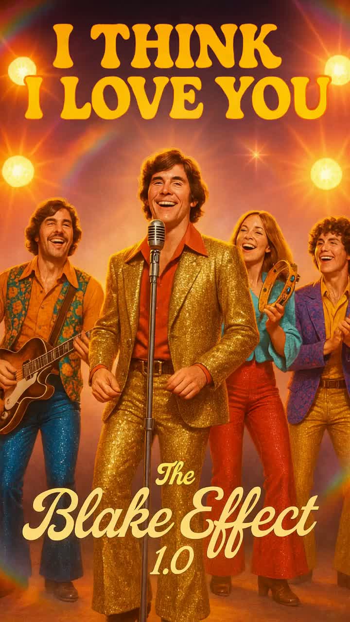 Bright, upbeat 1970s sunshine-pop inspired by the Partridge Family, Light rhythm guitar with clean strums, soft tambourine shakes, warm electric piano, and a bouncing bassline that keeps the song playful, Drums are gentle and happy with a soft snare and breezy hi-hats, Add lush stacked harmonies on the chorus, supporting vocals that “ooh” and “ahh” in classic 70s pop style, Lead vocal is warm, youthful, friendly, with a slightly breathy emotional edge like a heartfelt TV-show love confession, Bring in small string flourishes in the pre-chorus for lift, Keep everything bright, clean, wholesome, TV-studio polished, A little bit of bubblegum pop, a little soft-soul sweetener, Overall vibe: cheerful, innocent, catchy, and glowing with feel-good heart, Classic 1970s pop optimism with a Blake Effect modern spark