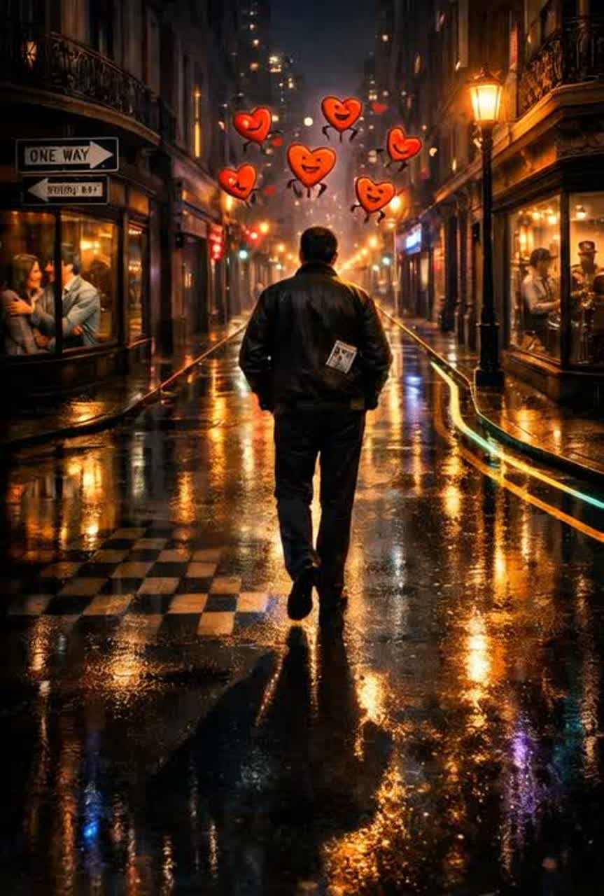 Pop-rock with lo-fi and indie swing influence, 95 BPM, Smooth male vocal, soulful and cinematic, Intro opens with vinyl crackle, muted trumpet, soft drums, Builds to indie-rock groove with big-band brass, strings, and emotional lift, Mood: warm, nostalgic, faithful, alive, Theme: real love that never quits — the one who stays when the world fades