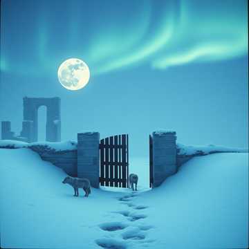 The black metal piece starts with a haunting, clean guitar motif, saturated in echo, establishing a melancholic mood, As distortion floods in, rapid tremolo guitar and thunderous basslines weave through relentless blast beats, Harsh guttural vocals and piercing screams intertwine with a dark, epic orchestration—sweeping strings, brass stabs, and a haunting female choir deepening the cold, solitary atmosphere, The track stays in A minor at 80 BPM, building to soaring, expressive guitar solos layered atop bleak soundscapes, anchored by symphonic power and chilling intensity