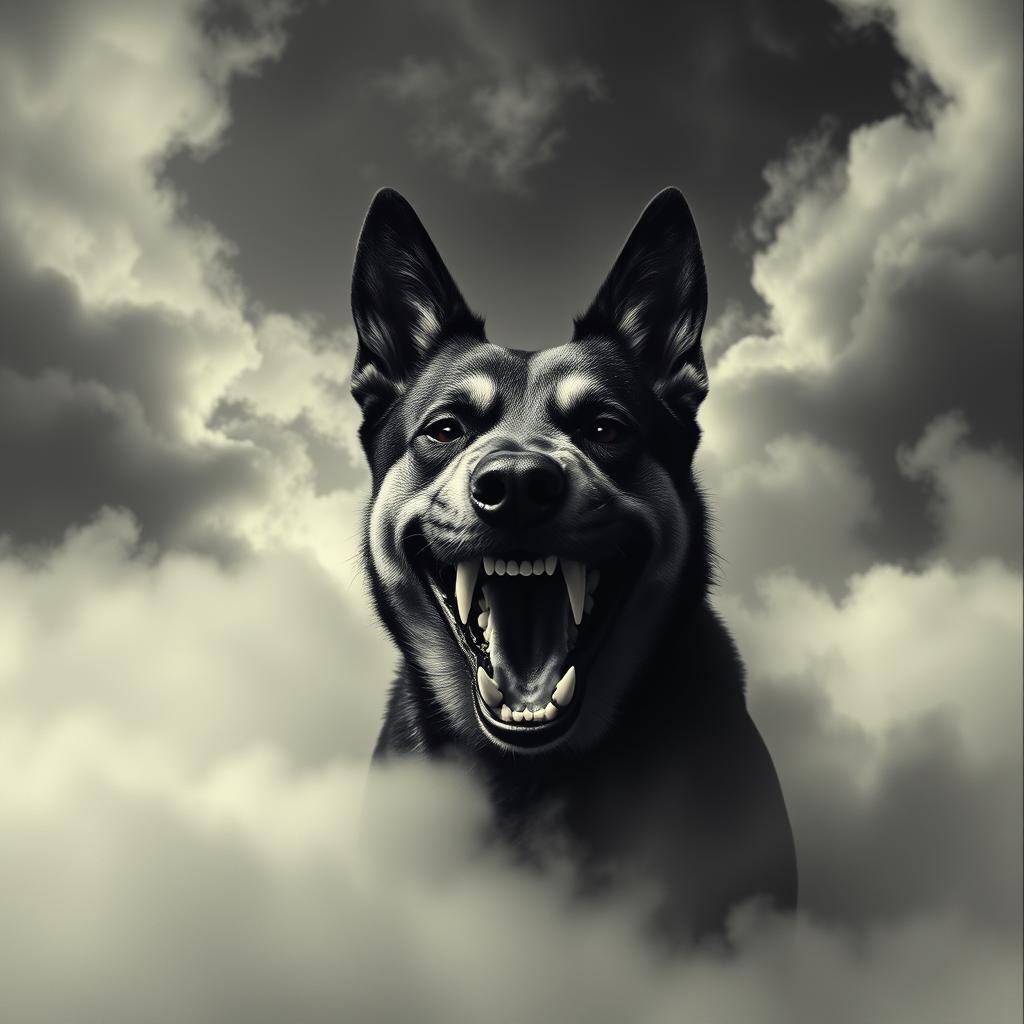 Big mean dog snarling, growling and barking very loud and scarey, No music, no beat, no human voice, ONLY a dog barking, snarling and growling