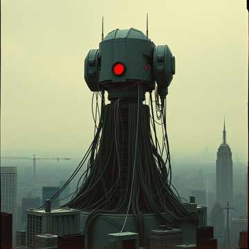 A brutal ultra heavy low tempo thrash metal onslaught with beatdown inspired slow bouncing rhythm, Relentless palm-muted riffing, jagged gallops, and ferocious menacing gritty low bass vocals snarl and growl with malice and bellicosity, judgement, righteous indignation, derision and mockery of the failures and fallacies of man, Lyrics are barked, growled and chanted like a post-apocalyptic future primitive barbarian pronouncing judgement upon his ancestors, Music shifts between ominous juggernaut chugging, sinister breakdowns, and eerie melodic passages, Twin guitar harmonies cut through like razor blades of clarity amid chaos, Drumming is dynamic ranging from low to mid to high-tempo, with pounding double bass and hammering snares, the sound of thunderous impending doom like battering rams and bombards laying siege to a cyclopean stone Keep, The mood is grim, menacing, theatrical — a brutally honest iconoclastic deconstruction of human hubris