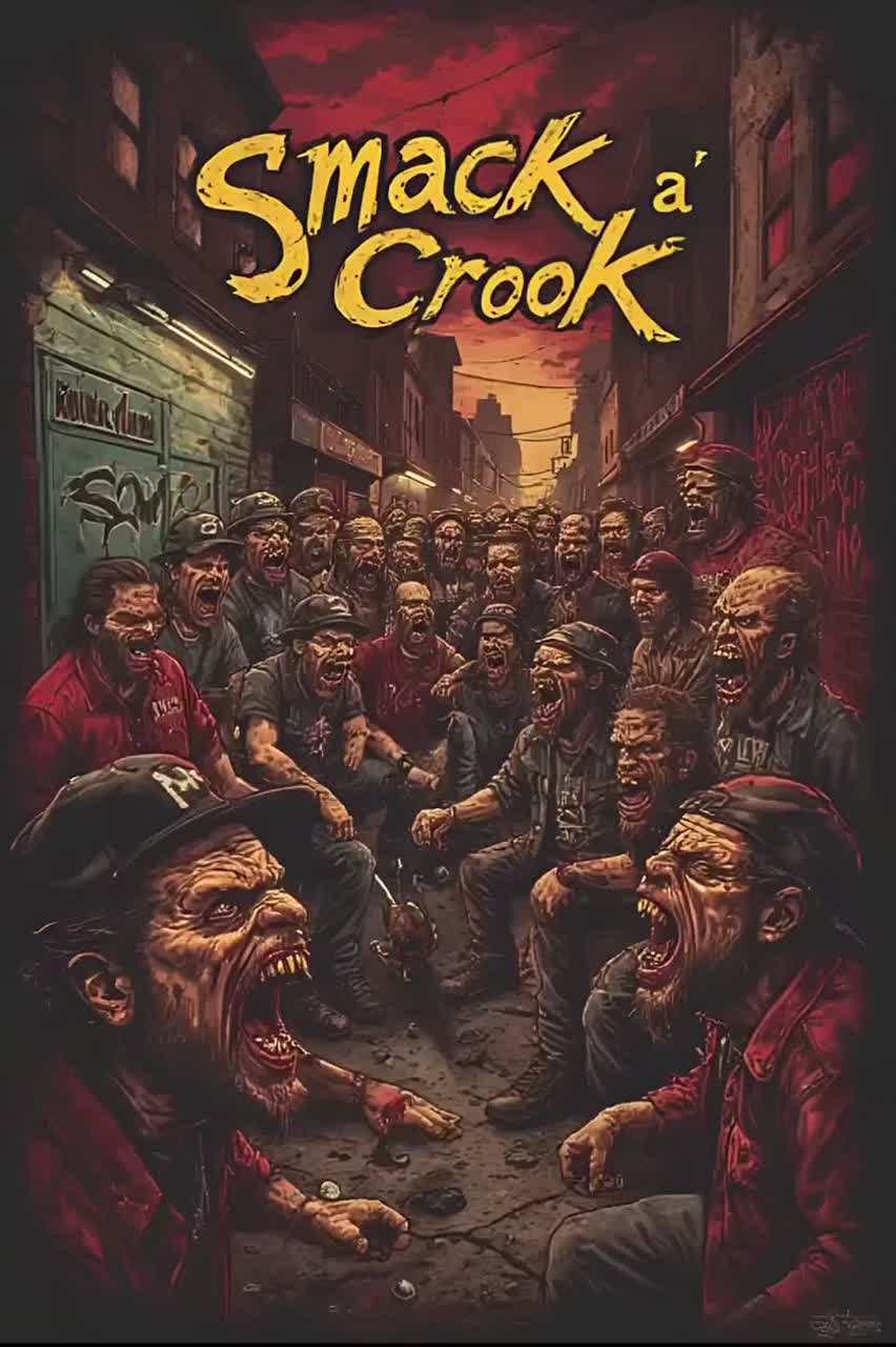 A brutal ultra heavy slow tempo thrash metal onslaught that captures the menacing struggle between the tyranny of the masses and peer pressure symbolized by the very real danger of crowd crush, Relentless palm-muted riffing, jagged gallops, and ferocious shouted vocals embody domination, addiction, and the suffocating mob rule, Lyrics portray the power of the crowd to overwhelm and destroy individuals, The individual, buried in crushing collectivism, claws upward through torment, confronting conformity with violence and rage, Music shifts between crushing speed assaults, sinister breakdowns, and eerie melodic passages, Vocals snarl with manic menace, Twin guitar harmonies cut through like knives of clarity amid chaos, Drumming is fast, unrelenting, with pounding double bass and hammering snares, The mood is grim, menacing, theatrical — an epic descent into the bowls of a living hell