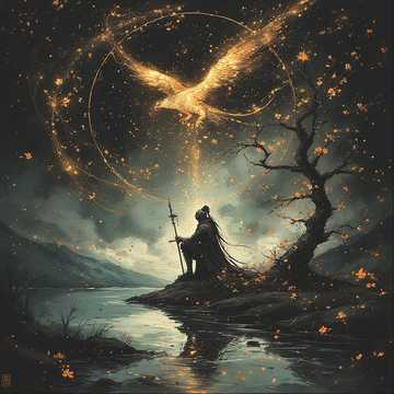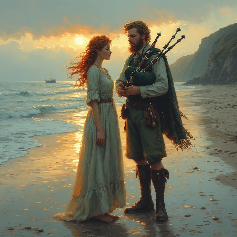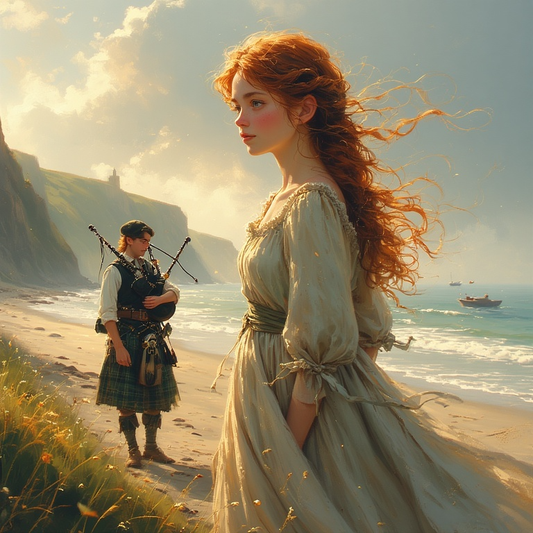 Modern folk-rock ballad with a Celtic twist, Fingerpicked acoustic guitar and steady kick drum create a grounded pulse, Lush male vocal, baritone with warm grit, Backing harmonies in minor thirds, Add driving fiddle lines, low whistle fills, and electric guitar flourishes that echo like distant thunder, Echoes of irish folk-rock, Tempo mid-paced, atmospheric but forward-moving – evokes stone, moss, and myth beneath the boots, Include a layered solo section: fiddle rising into slide guitar, Cinematic, earthy, searching